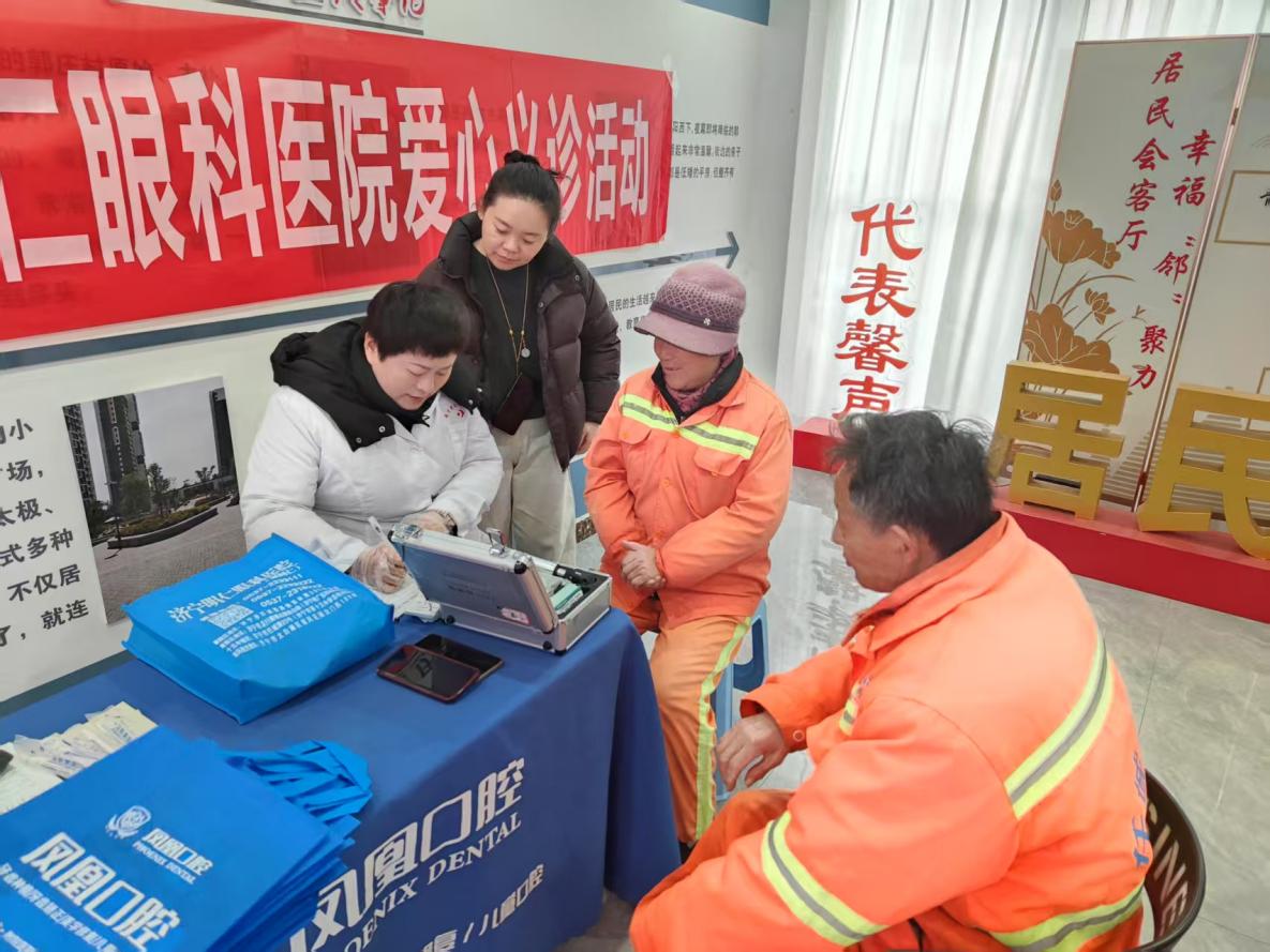水韵城社区整合辖区资源为居民和环卫工人提供了便利的眼部医疗服务,增强了居民健康用眼意识和疾病防治意识,也提升了环卫工人的幸福感和获得感,营造了健康、和谐的社区环境。