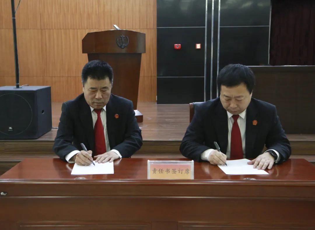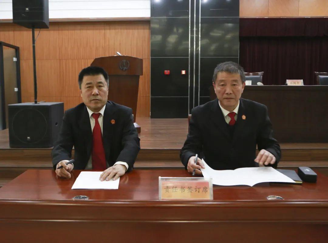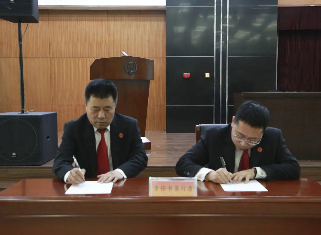 寒亭区人民法院党组书记、院长周建明与班子成员逐一签订了党风廉政建设责任书。