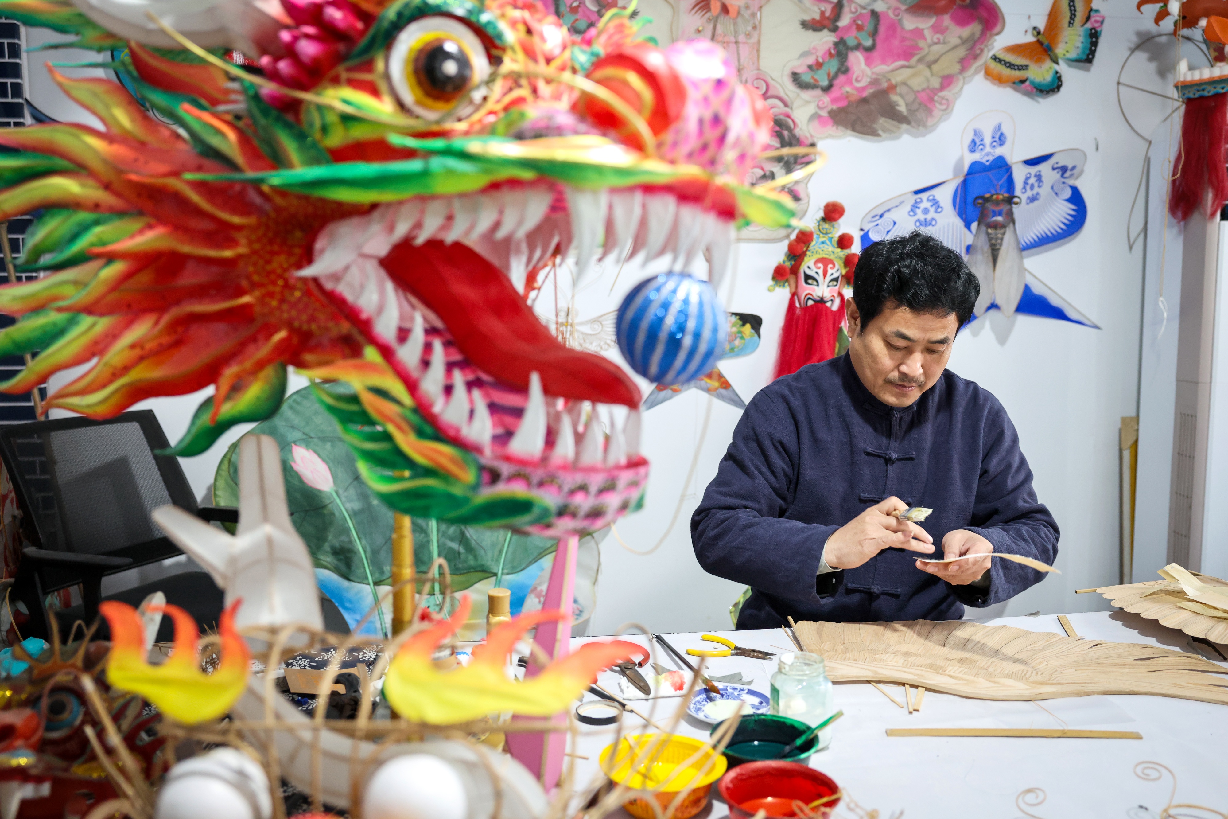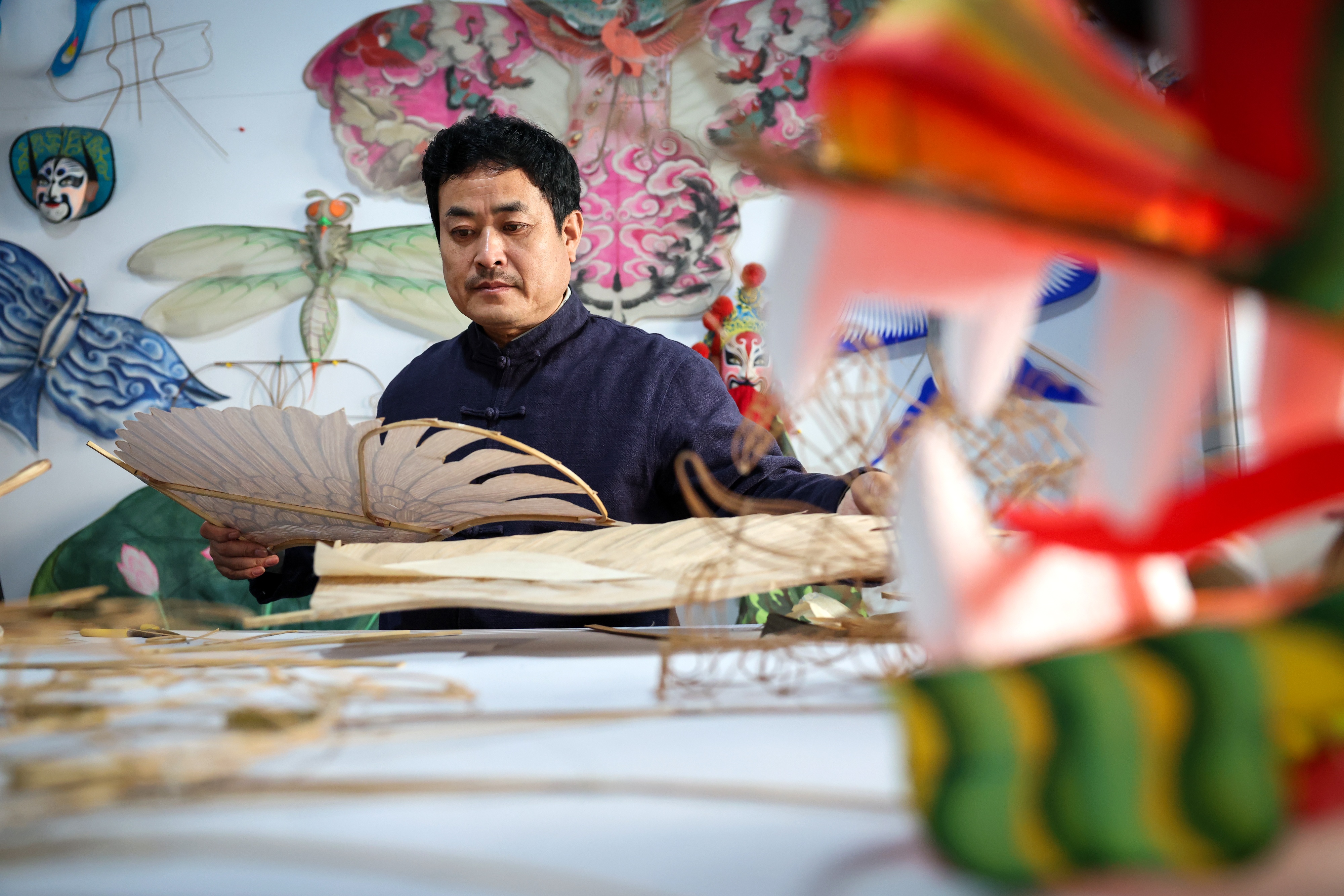 春风起,风筝飞。3月5日,潍坊杨家埠王永训工作室内,一派繁忙景象。风筝制作手艺人们正忙碌着,手中的竹篾、绢布和彩绘颜料在他们的巧手下,逐渐变成一只只栩栩如生的风筝。