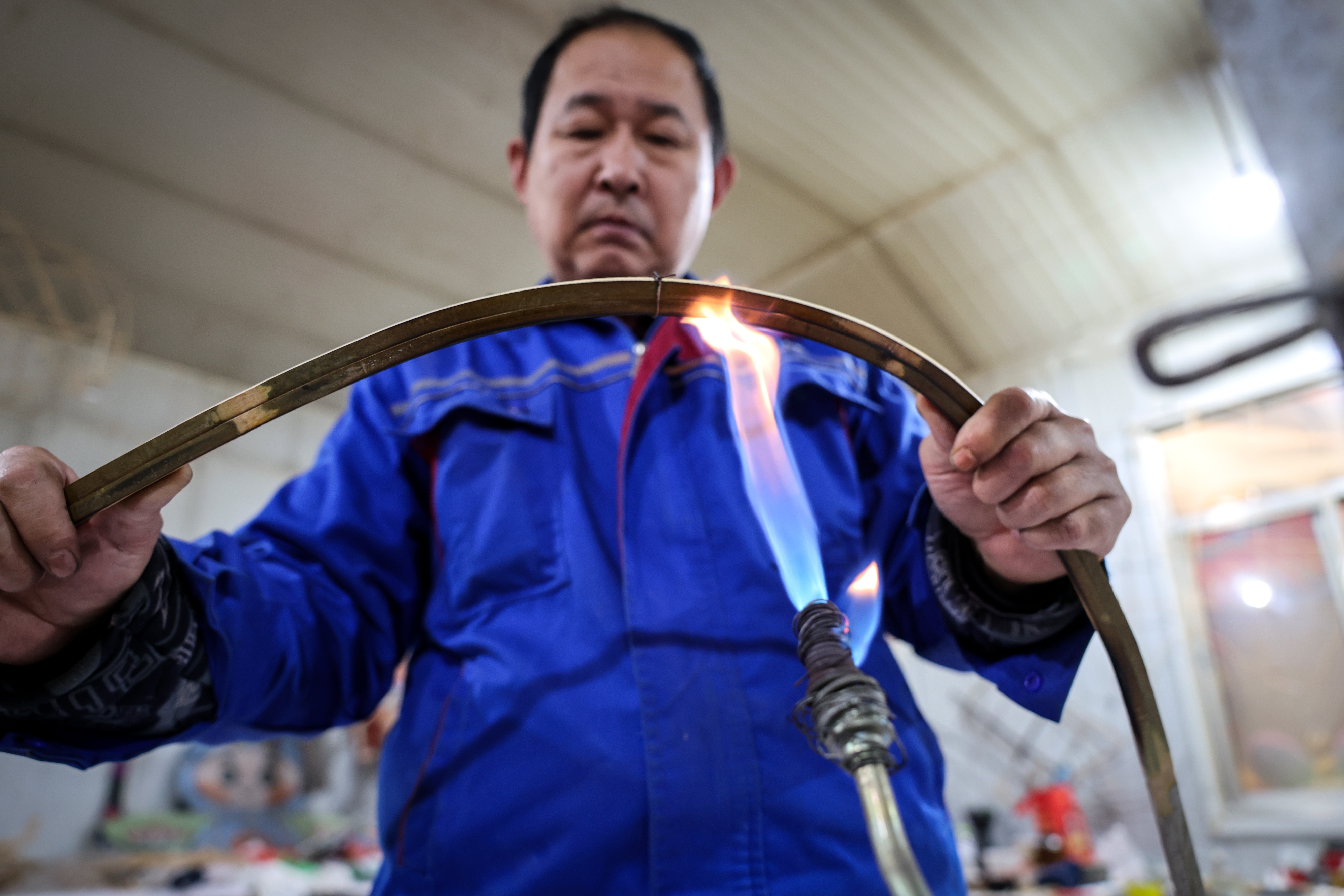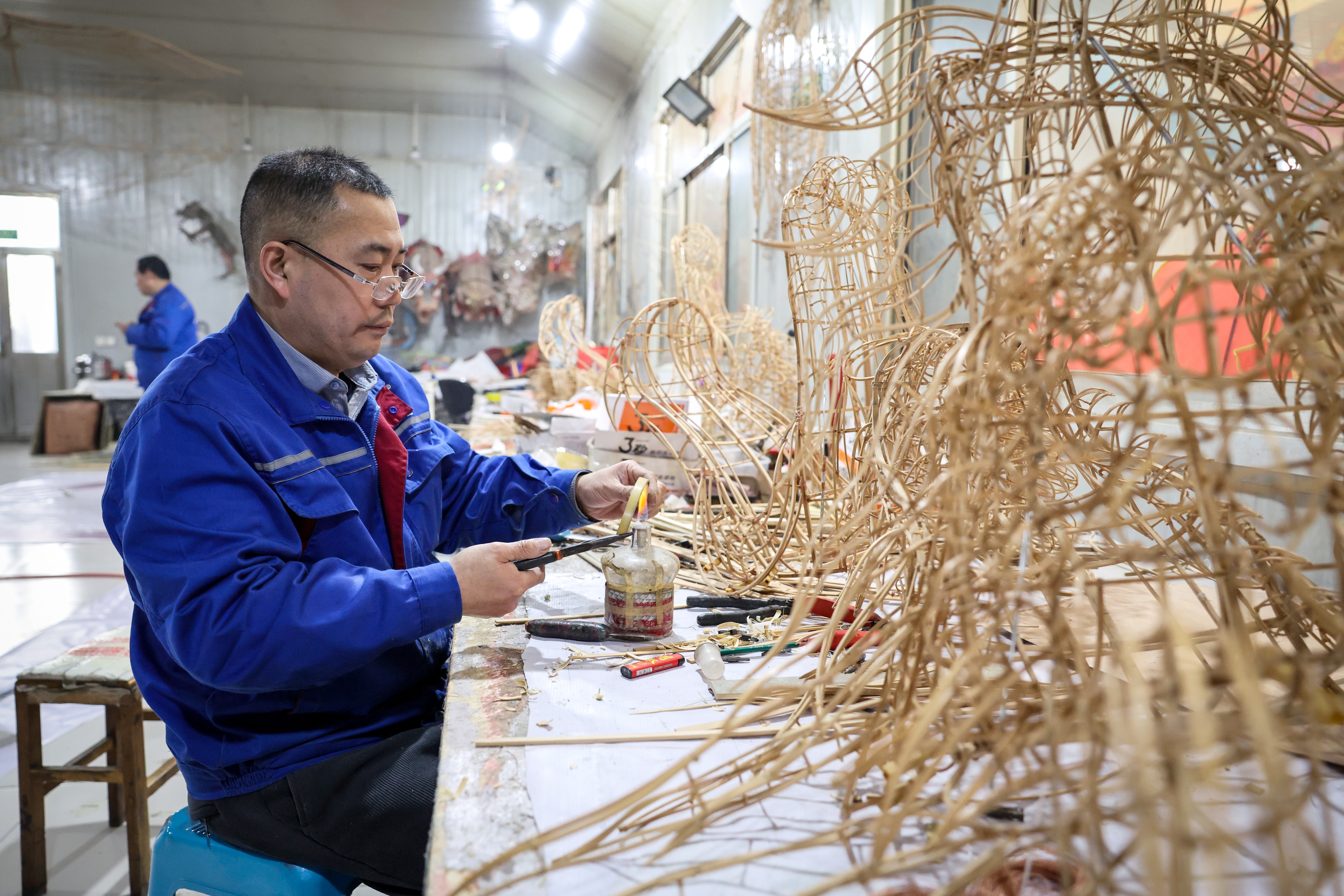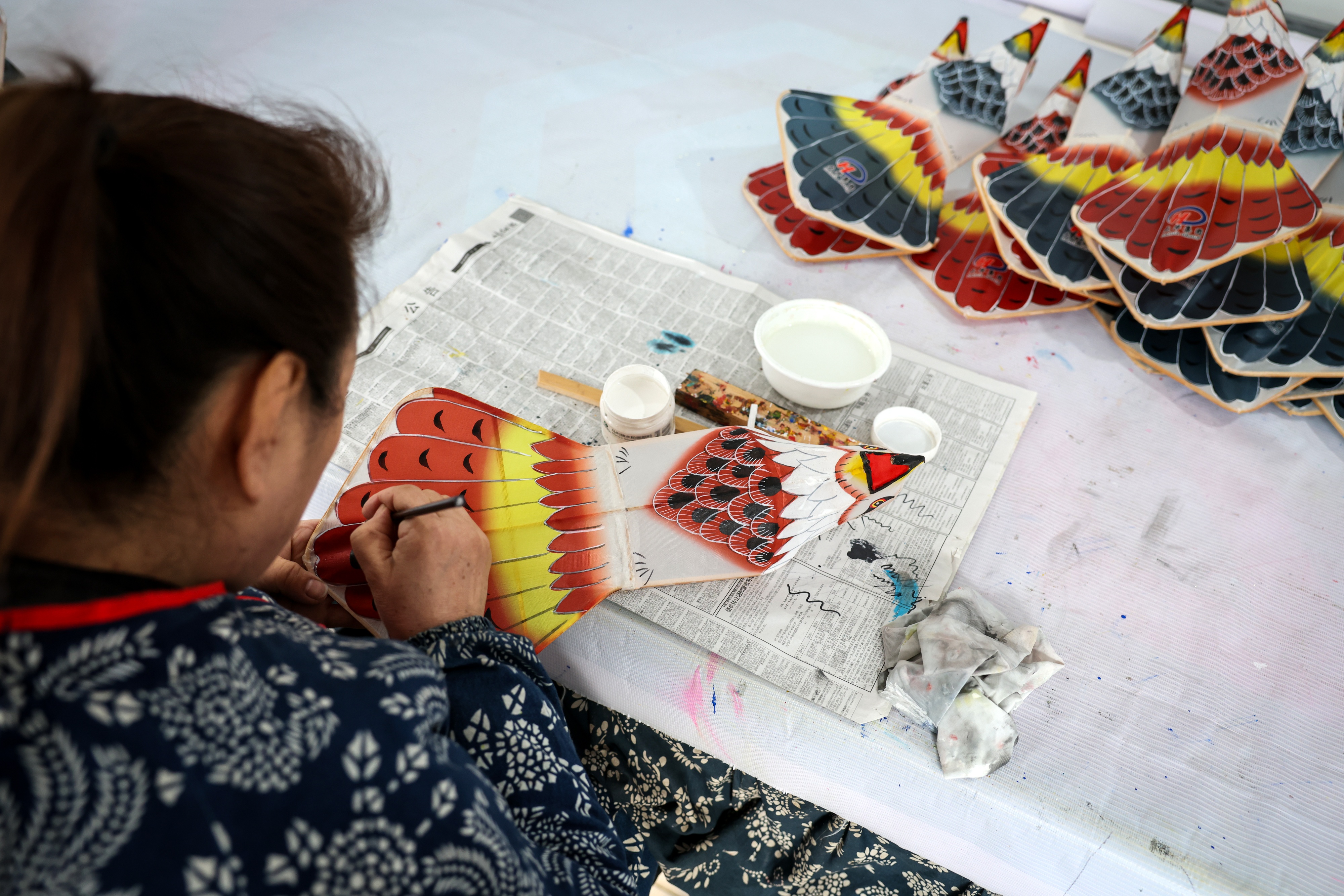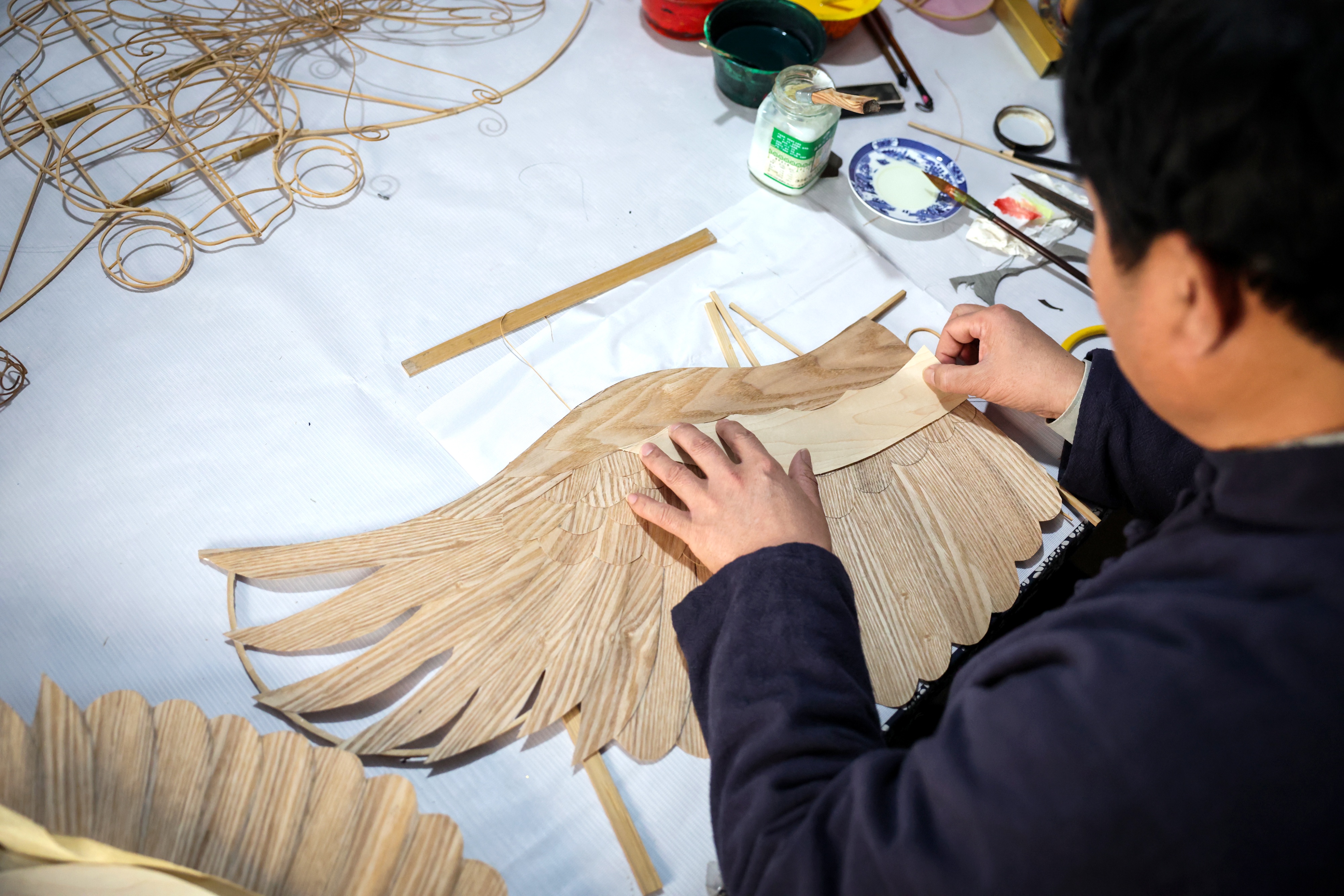 春天是放风筝的季节,也是风筝制作的高峰期。随着订单量的增加,工作室的匠人们加班加点,赶制风筝。王永训工作室以其精湛的手工技艺和独特的传统风格闻名,每一只风筝都凝聚着匠人们的心血与智慧。从扎制骨架、糊纸绘画到调试平衡,每一个步骤都一丝不苟,确保风筝不仅美观,还能在春风中轻盈飞舞。