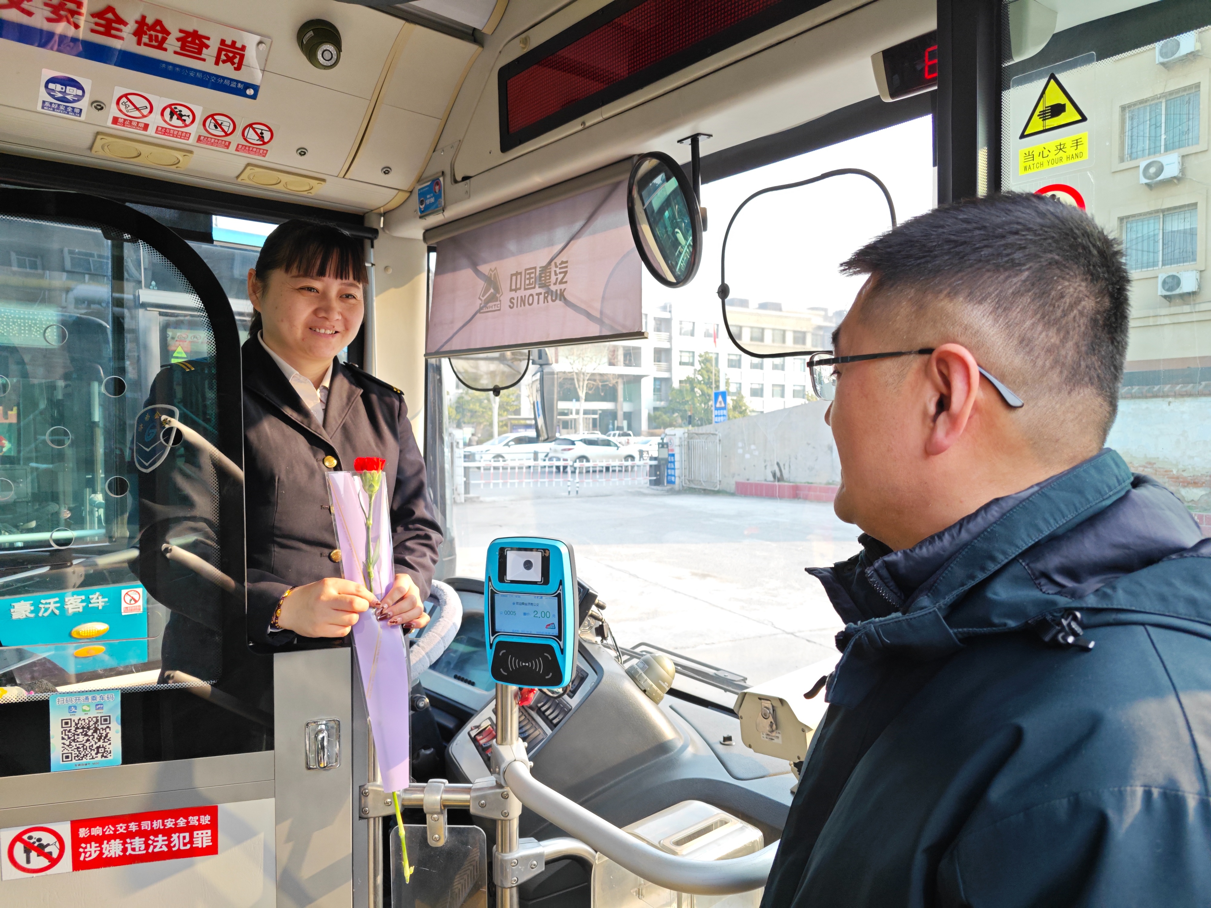 接过鲜花的女职工们,脸上绽放出惊喜又幸福的笑容。这些平日里在公交一线默默奉献的她们,有的是经验丰富的公交驾驶员,每日驾驶着车辆穿梭在城市的大街小巷,为市民的出行提供保障;有的是认真负责的调度员,精心安排车辆运营,保障线路顺畅;还有那些默默付出的女保洁们,她们不辞辛劳,将公交车内外打扫得一尘不染,为乘客营造出整洁舒适的乘车环境。