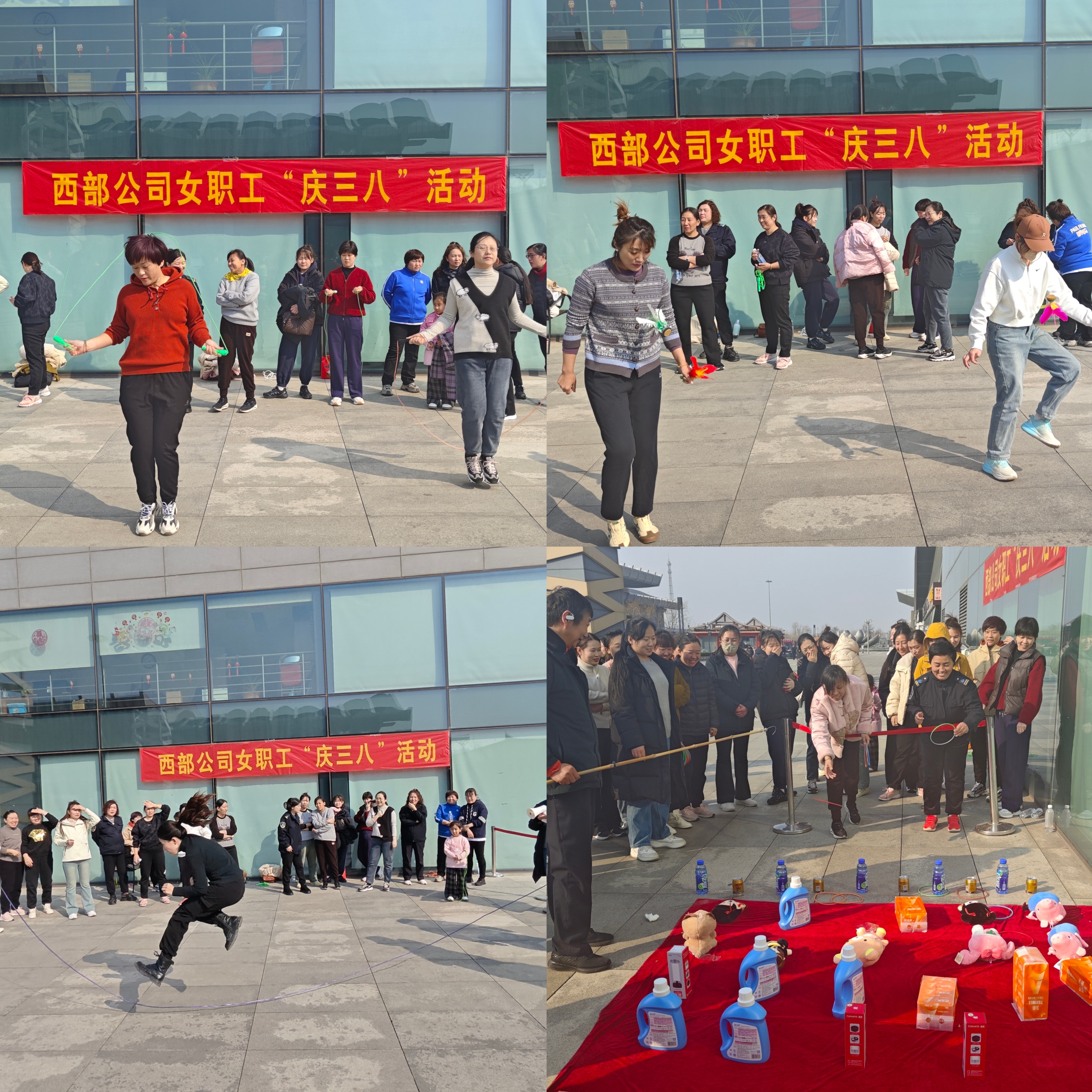 3月6日下午,西部分公司精心组织了“庆三八”活动,为节日增添了欢腾与喜悦。此次活动由四个环节组成,分别为单人跳绳、集体跳绳、单人踢毽、投掷套圈。公司所属八个工会精心选拔了40余名女职工参加。随着主持人一声令下,比赛正式拉开序幕。