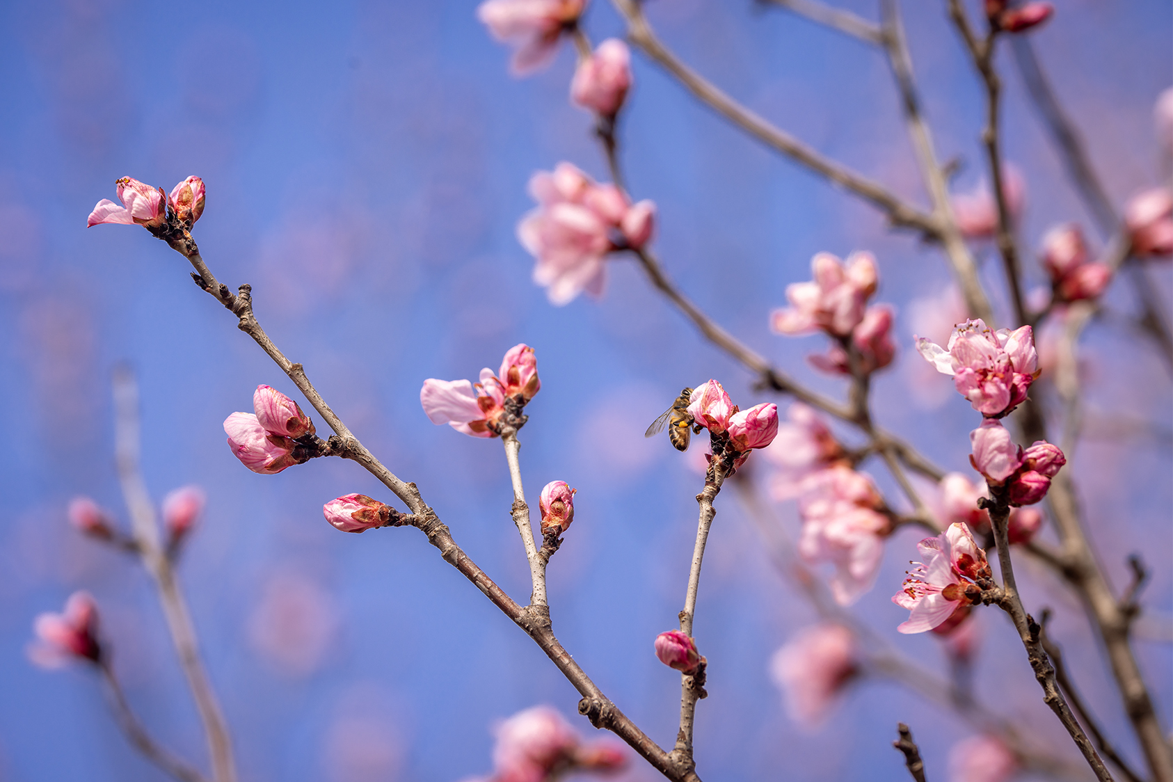 春风款款而来,千佛山上桃花开。登山而望,或红或白的花儿娇艳夺目,煞是喜人。桃花香溢春风里,满树花,满树香,引来蜂蝶翩然。在成片成林花海里漫步,“桃”醉了心旷神怡的游人。 (大众新闻记者 杨润勤 摄影 张宝贤)