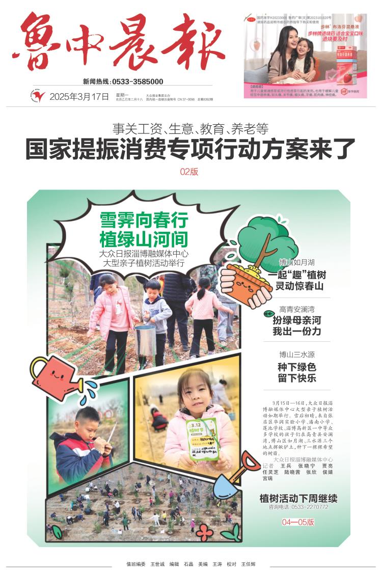 雪霁向春行,植绿山河间!大众日报淄博融媒体中心大型亲子植树活动举行,详情看今日晨报