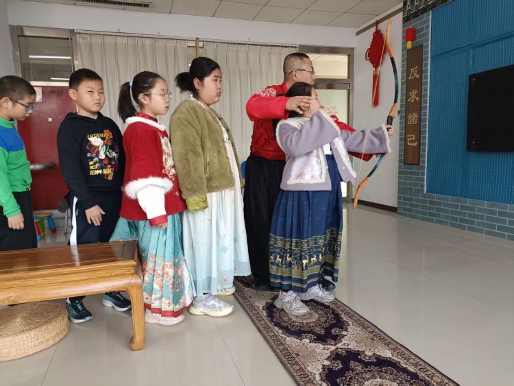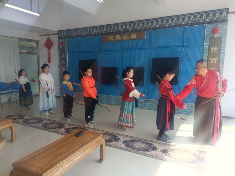 随后,在成兵的悉心指导下,孩子们纷纷拿起弓箭,开始了他们的礼射之旅。从站姿的调整到拉弓的力度,每一个细节都力求精准,每一次的尝试都有着对传统文化的敬畏与热爱。用射箭的态度对待人生,姿态要端正,要用心,全神贯注。射以观德,不仅是射箭之道,更是人生之道。