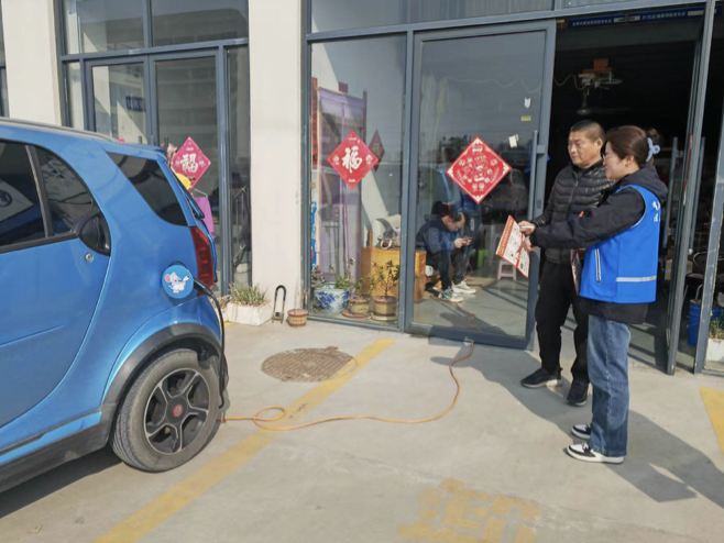 近日,济宁市任城区安居街道豪德园区开展整治飞线充电宣传活动。