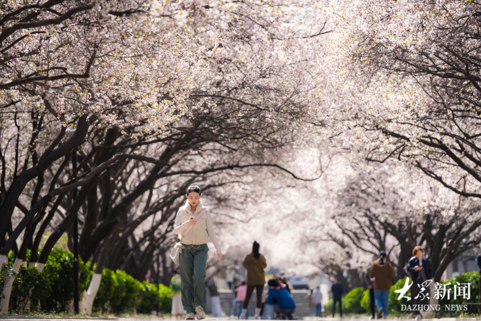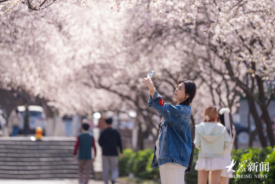 随着春意越来越浓,山东师范大学千佛山校区内的紫叶李悄然绽放,往日的“樱花大道”重现。山东师范大学千佛山校区有两条“网红路”,因路旁栽种的紫叶李枝繁叶茂,酷似武汉大学的樱花而被网友称为山师“樱花大道”。3月22日,记者发现,校园里的紫叶李花海吸引了大量游客前来赏花游览,摄影爱好者们也聚集于此,用相机和手机记录这一幕春日美景。(大众新闻记者 毕胜)