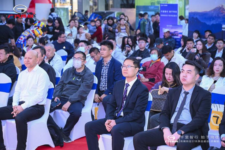 济南世茂广场,凭借其独特的都市氛围与宽敞舒适的空间,为本次活动提供了绝佳场地。精心布置的活动现场,灯光璀璨,传祺S7身披时尚且极具科技感的外观,静静陈列在舞台中央,以其大气磅礴的车身线条和精致的细节设计,瞬间吸引了全场目光,现场人群无不停下脚步,欣赏一番。