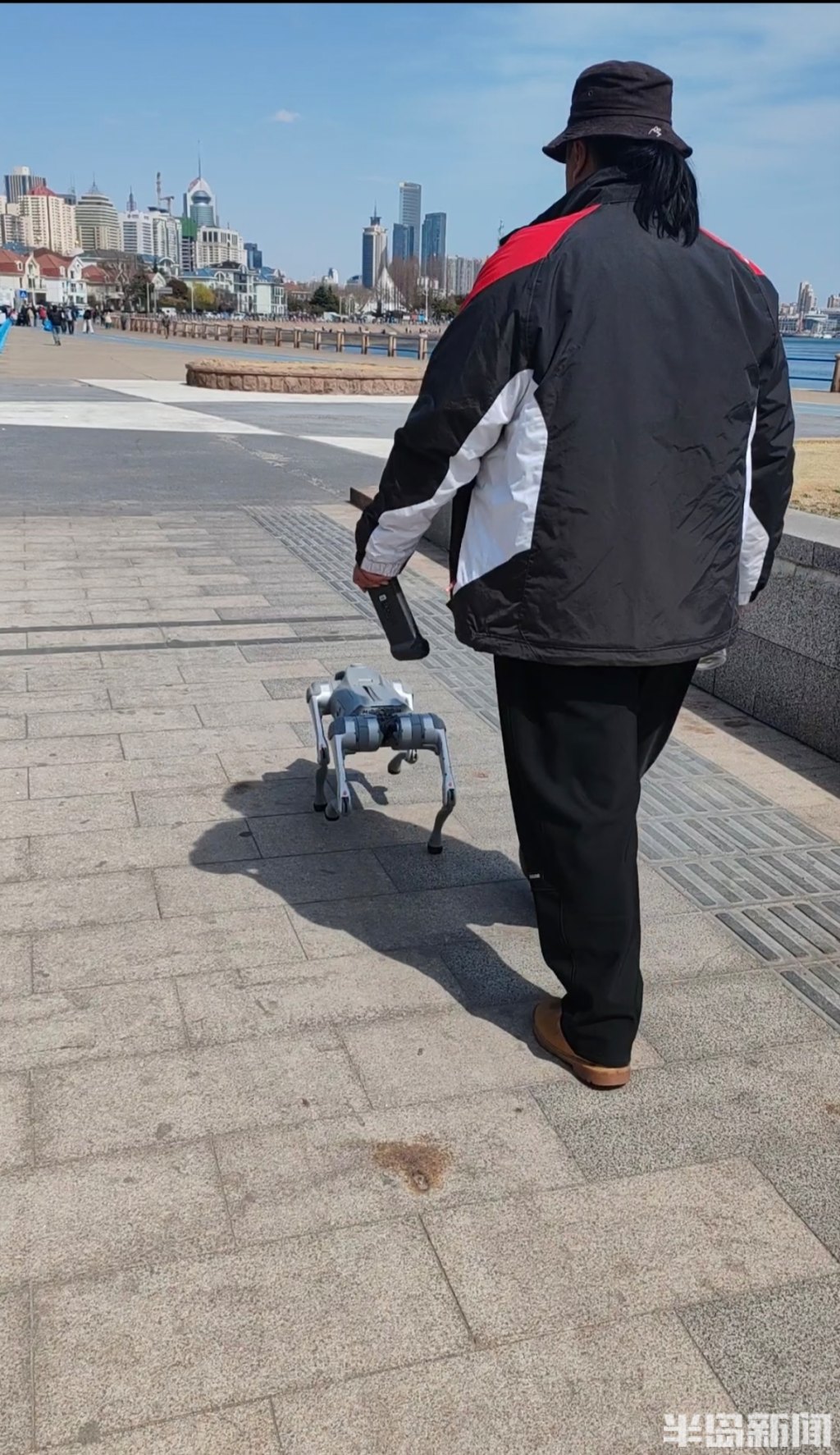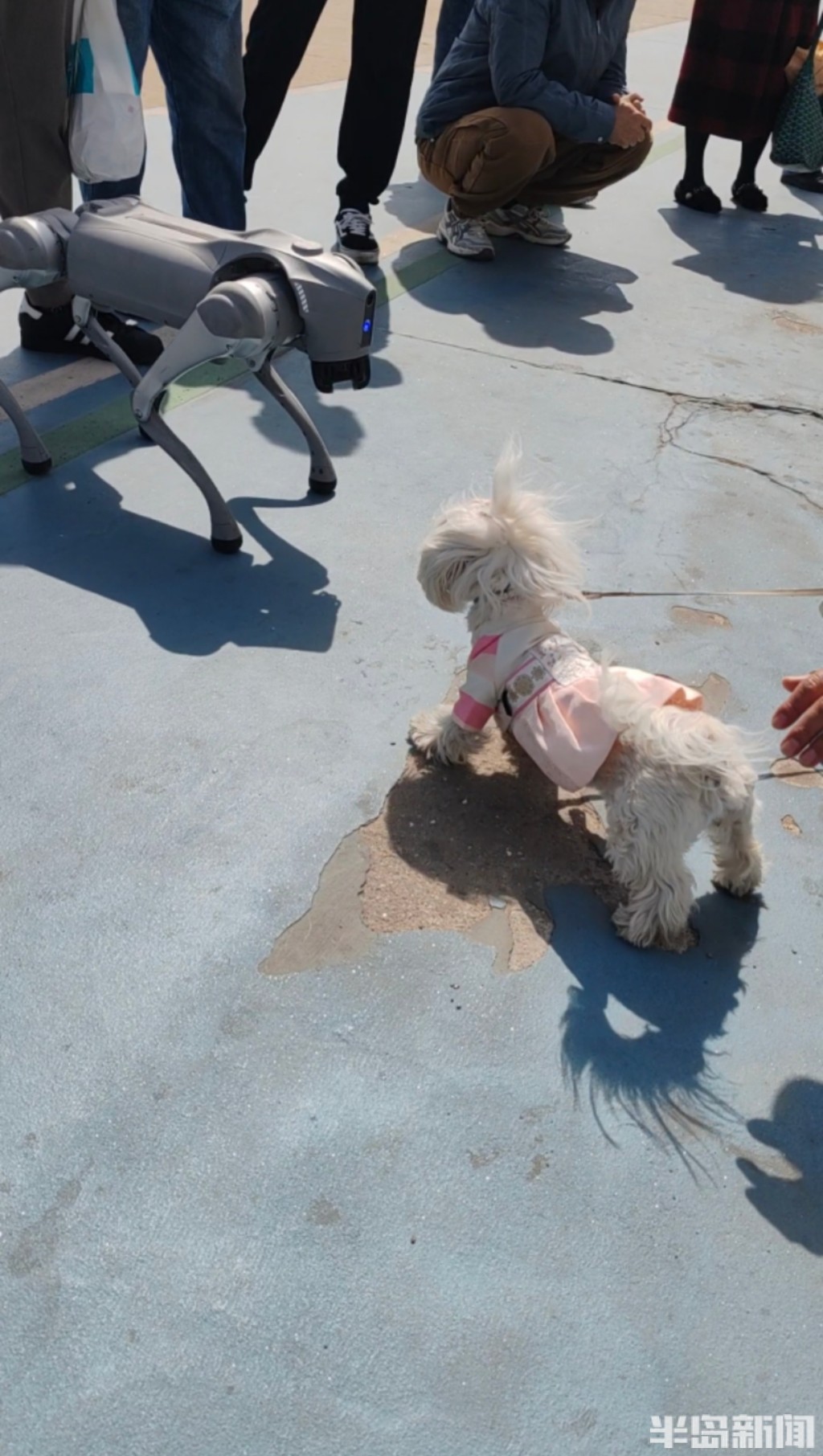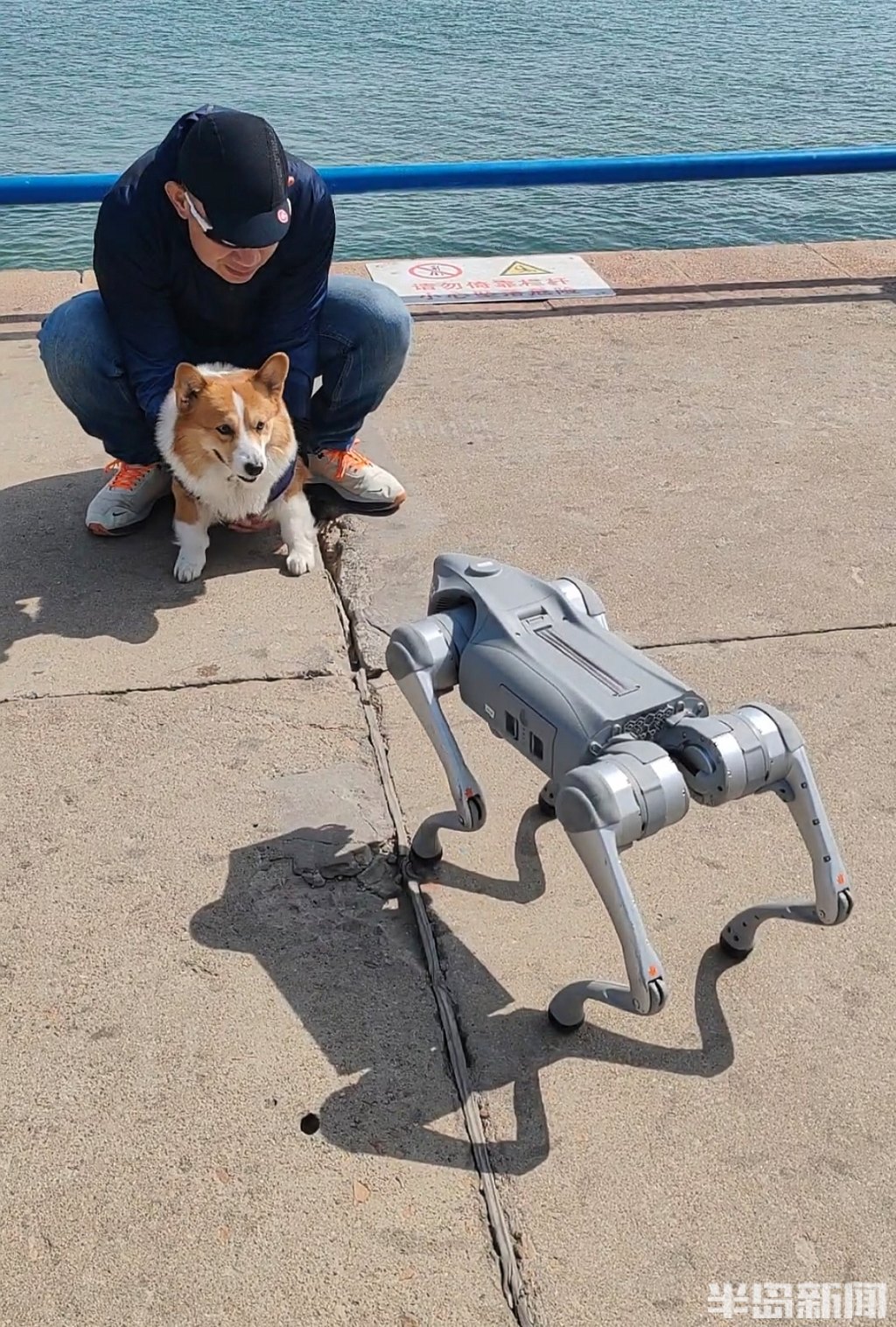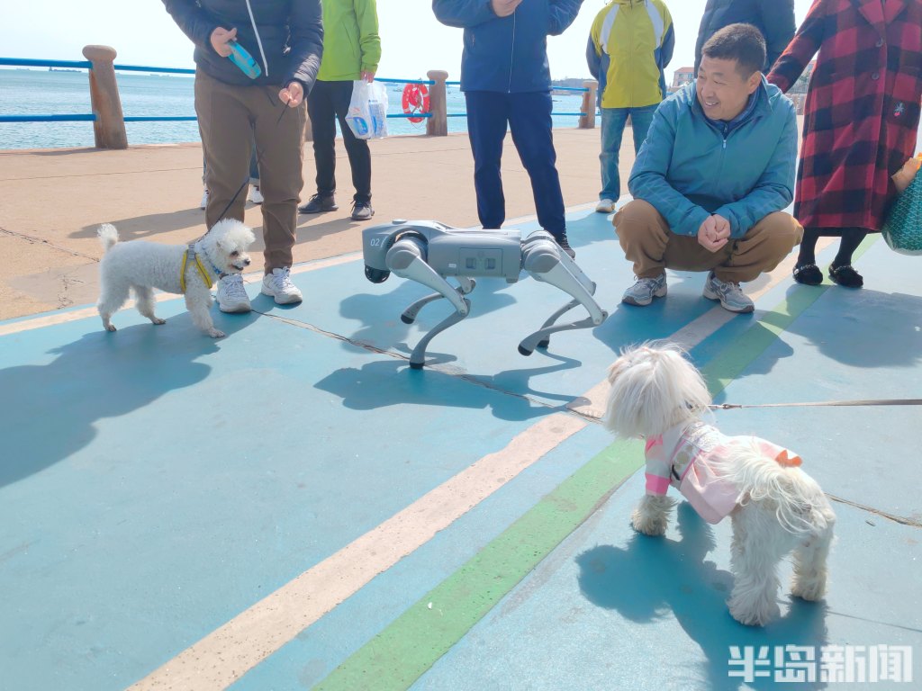 人工智能改变了人们的生活,就连宠物狗也可以被智能狗所代替。3月30日,在青岛前海一线,有一位男士带着一智能机械狗在漫步,它的出现吸引了不少市民的眼球。恰巧几只宠物狗从不同方向跟随主人与机械狗相遇,结果现场就成了一台“戏”。