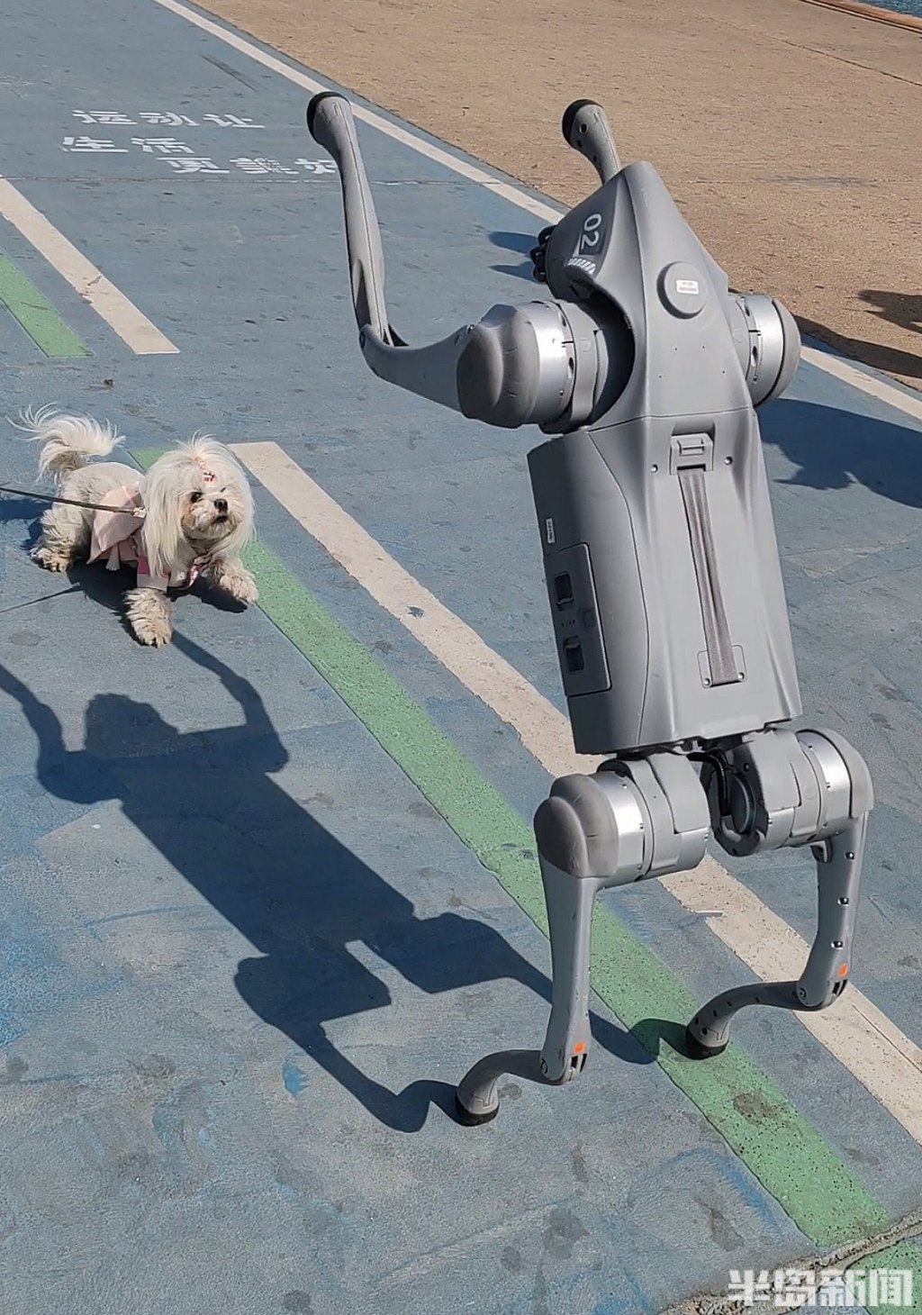 只见机械狗在主人的操控下做出打招呼、跳跃、双腿站立等姿势,而几条宠物狗则被这个“异类”吓得狂吠不止,并不断往后退,更多的市民前来围观,它们的各自反应引得人们哈哈大笑。很多人赞叹,人工智能的发展,可能连宠物狗都要“下岗”了。