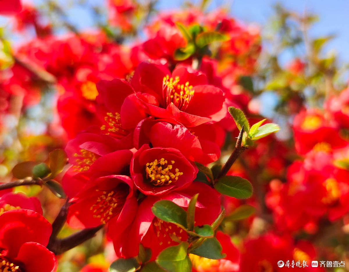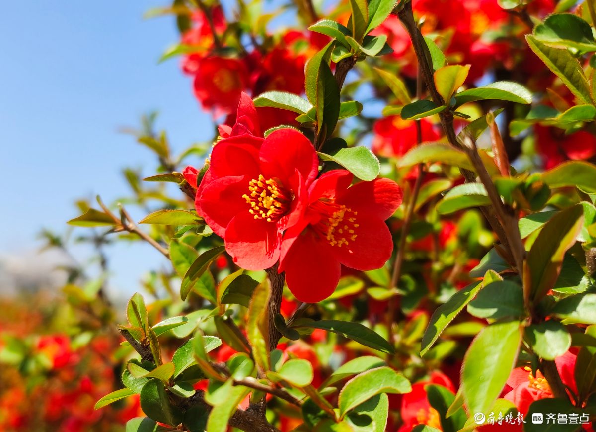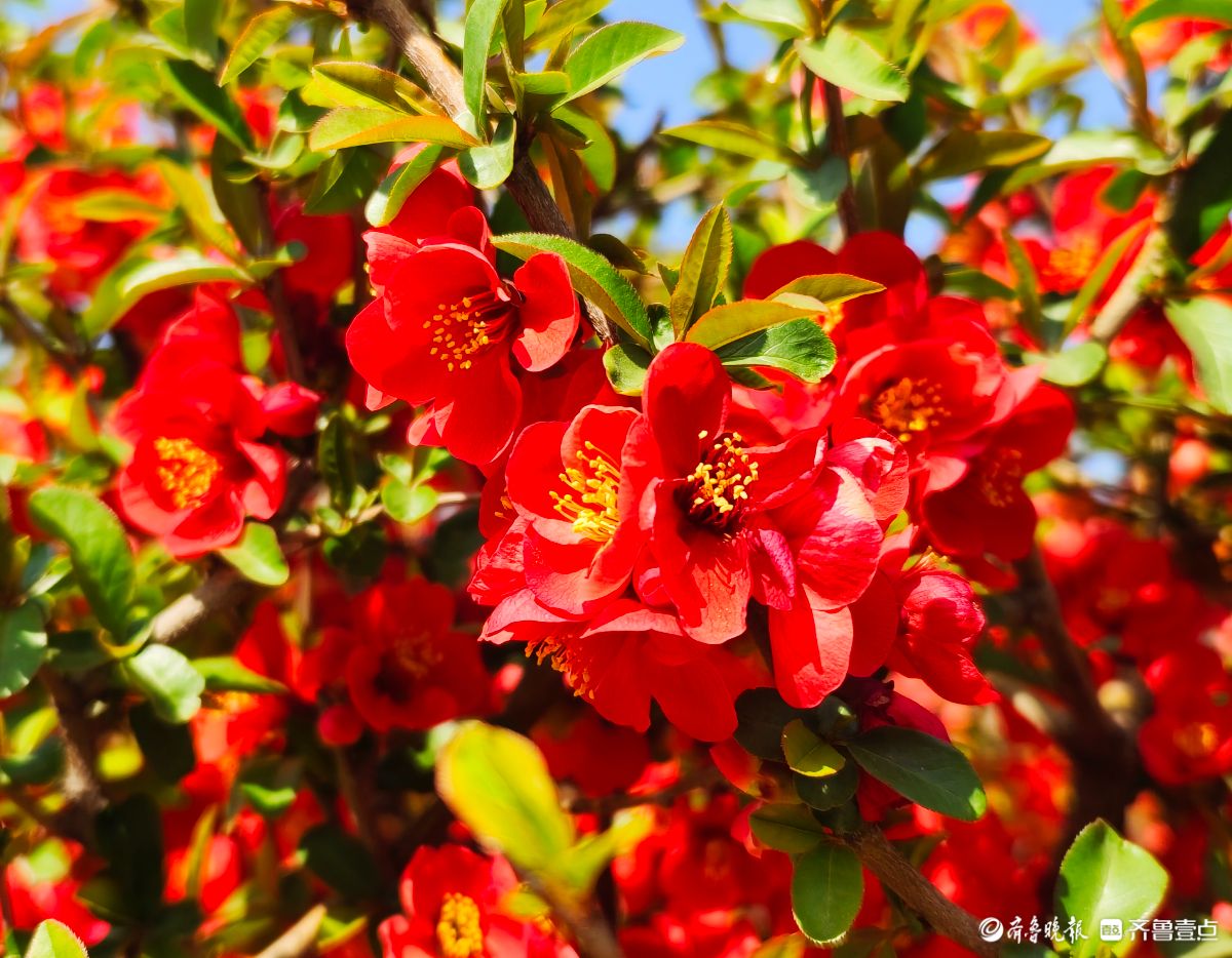 泉城广场的贴梗海棠,绚烂盛放一片火红摄影 | 2025-04-01 17:16:47 微信扫码扫码下载客户端昨日中午,路过泉城广场时,我被一片火红的贴梗海棠吸引住了,花朵色泽红艳,好像燃烧着的火焰,在春色里格外醒目,给人一种热烈又浪漫的感觉。 高军 摄责任编辑:王媛