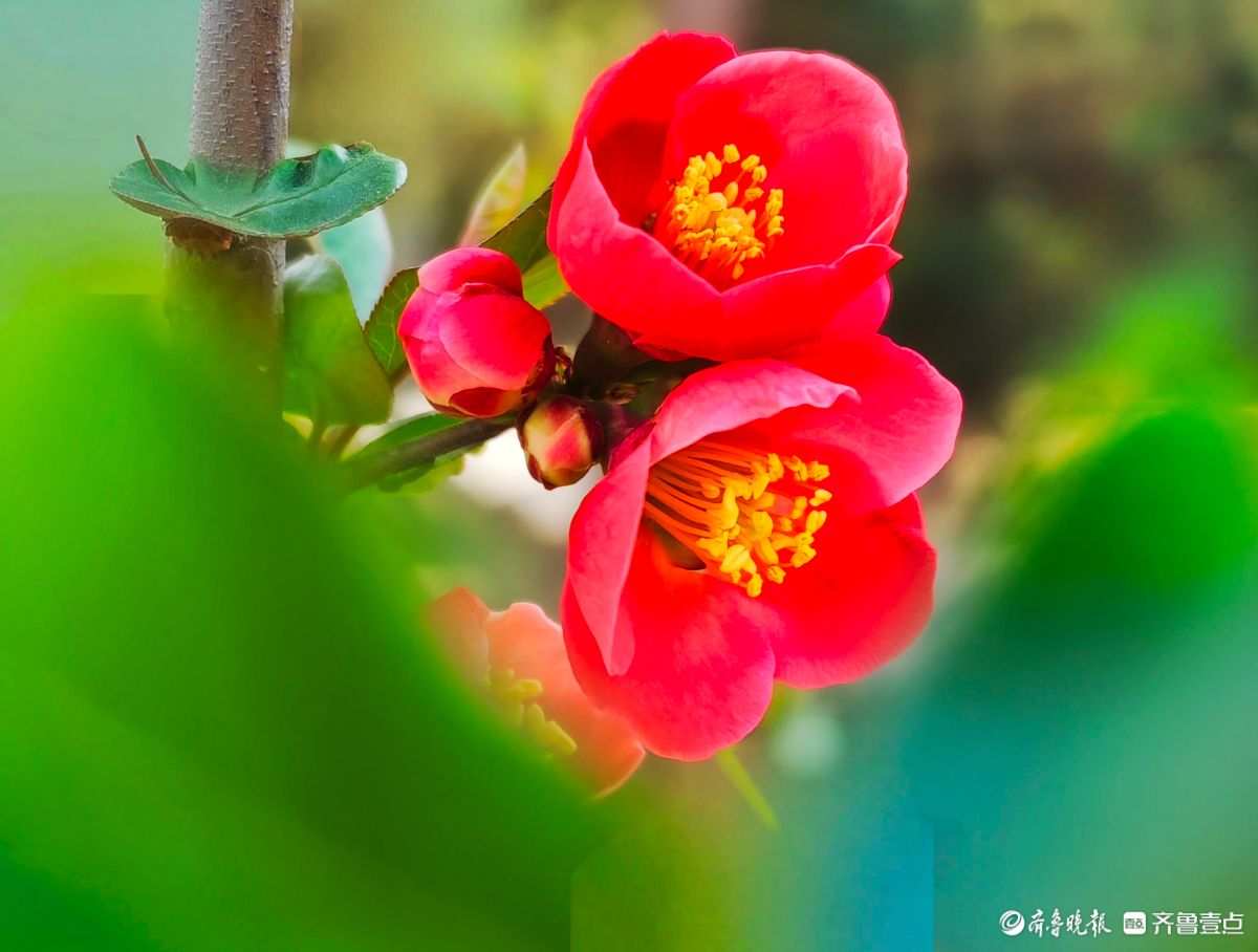 昨日中午,路过泉城广场时,我被一片火红的贴梗海棠吸引住了,花朵色泽红艳,好像燃烧着的火焰,在春色里格外醒目,给人一种热烈又浪漫的感觉。 高军 摄