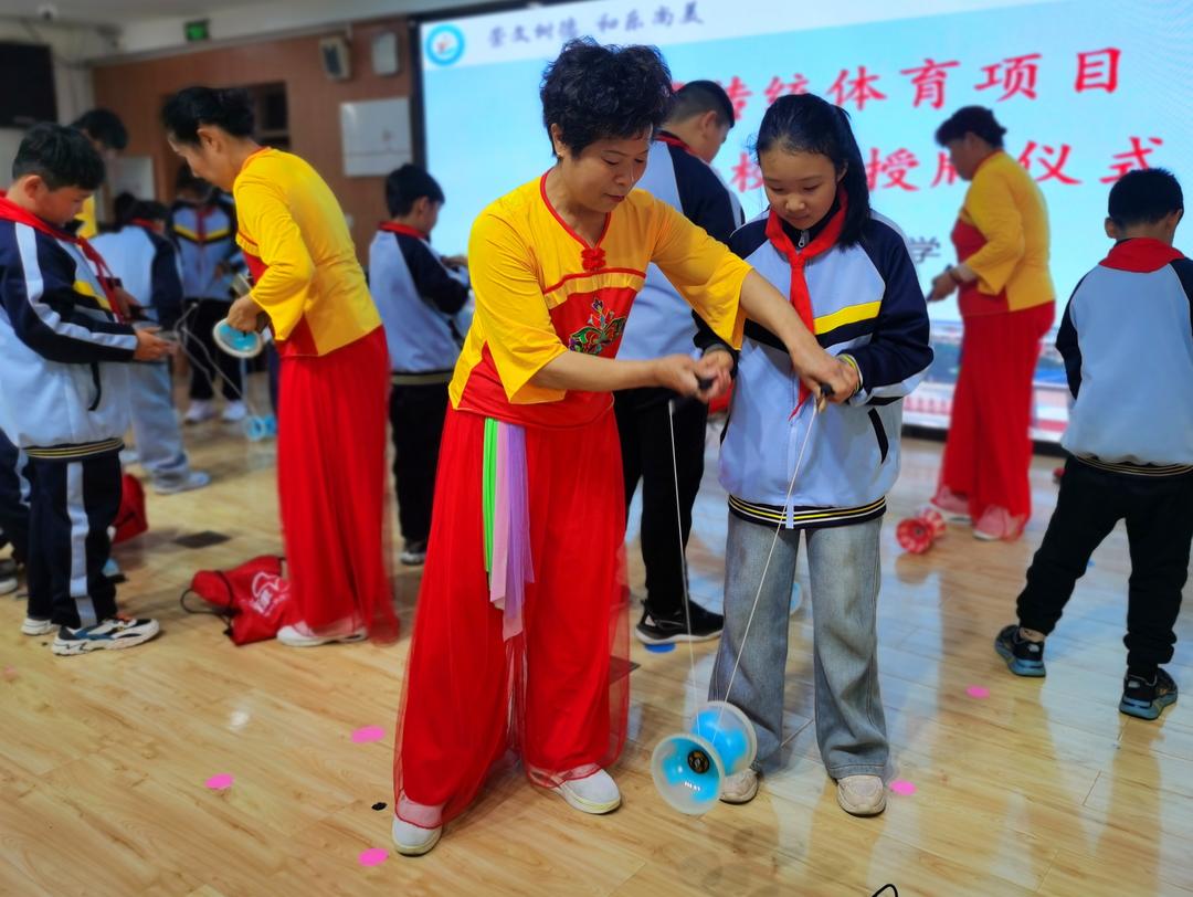 活动期间,高新区空竹协会的老师们挑选25名小学生,开展抖空竹技艺培训。从基础的握杆姿势,到简单的抛接动作,老师们进行了耐心细致的指导,助力学生迈出传承空竹非遗技艺的第一步。