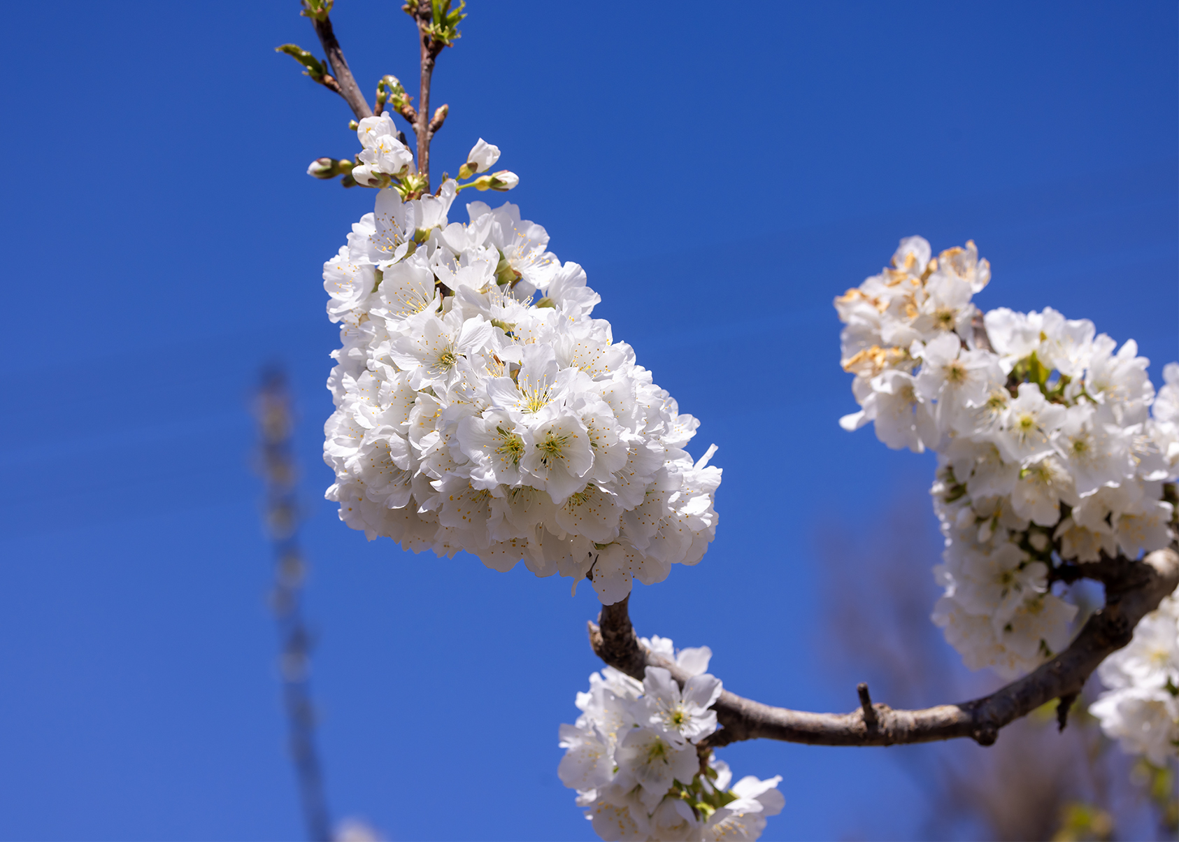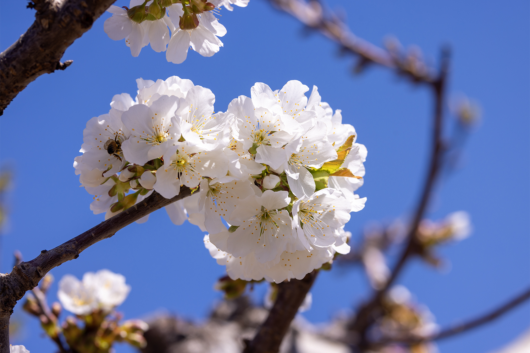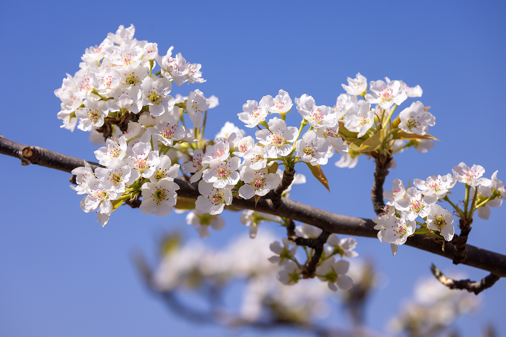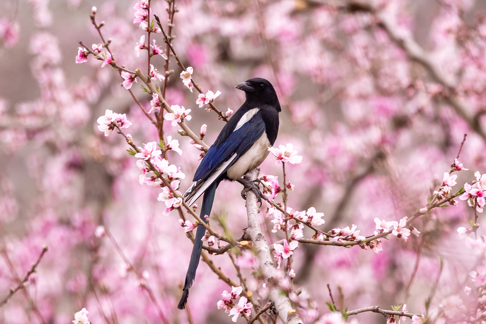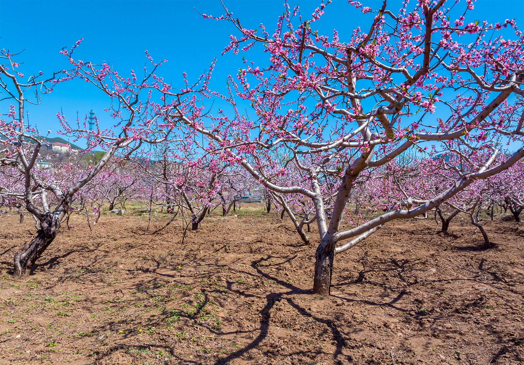 清明春游来到济南南山里的锦绣川水库,从大堤西望是一个偌大的花园。入园便是密密匝匝的桃树,弯弯曲曲的枝干上开满粉红色桃花,如绚丽的红霞;园的深处是梨花、樱桃花,洁白如玉,像覆了层白雪。