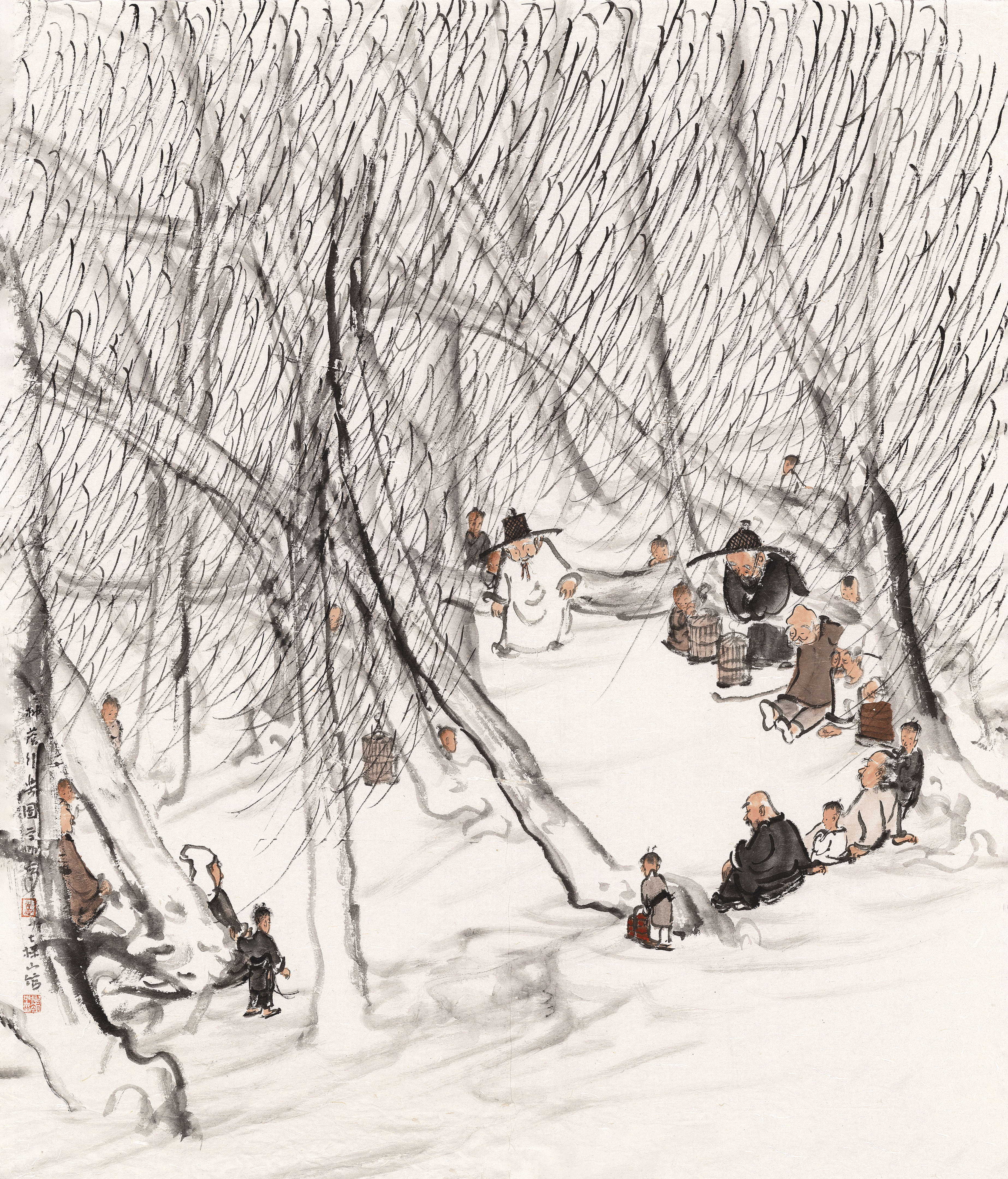 李学明1954年生于山东聊城,毕业于曲阜师范大学艺术系,系中国美术家协会会员,山东省美术家协会原副主席,山东工艺美术学院教授,2025年2月以荣聘教授的身份全职加盟山东大学。李学明是当代中国人物画领域极具文化品格和艺术个性的代表性画家,其作品多取材于田野乡村,无论稚气童子还是慈眉髯翁,无论河边古柳还是田间佳蔬,皆透露着浓郁的故园情怀和文化观照。其笔墨简括舒朗,构图开合自如,意境高邈深厚,以极具当代性的绘画语言表达强烈的文化自觉。本次展览作品为画家从艺经年的精品力作,分为“坐忘林泉”“放怀湖山”“念兹乡土”“既耕春圃”四个部分,呈现出画家在中国画创作中的履痕和成就。