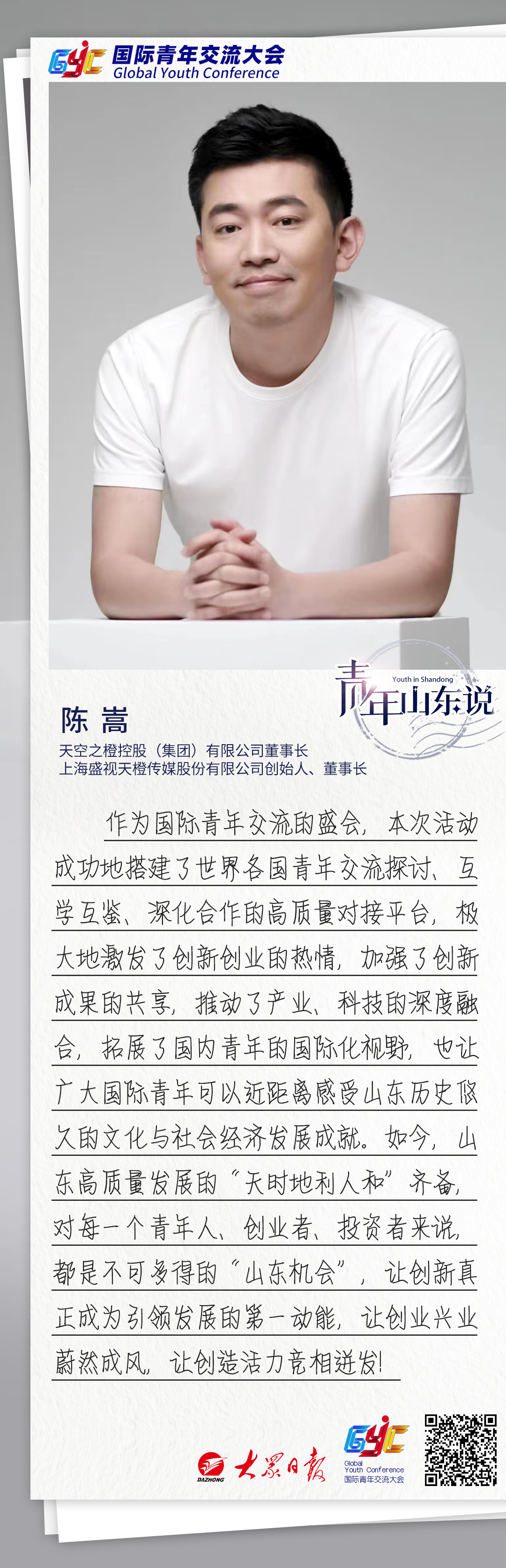 国际青年山东说|天空之橙控股(集团)有限公司董事长陈嵩:创业投资者的“山东机会”到来