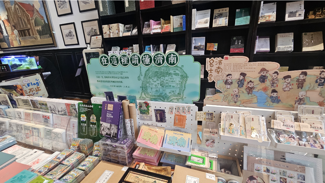 在阡陌书店579百工集店内,记者看到根据济南名士文化、街区景点、胶济铁路等内容设计的文创产品。济南的城市文化,被浓缩在一个个特色文创中,通过书店这个窗口展现在游客面前。“对于景区、主题街区和商业综合体来说,特色小众书店的入驻可以丰富其业态,有效增加游客和消费者的停留时间。”王静敏谈道,“现在的书店,已经不单是买书阅读的地方,它更多得是作为一个城市的文化展示和交流空间,让人们重拾对阅读的敬意,通过阅读爱上这座城市的文化。”