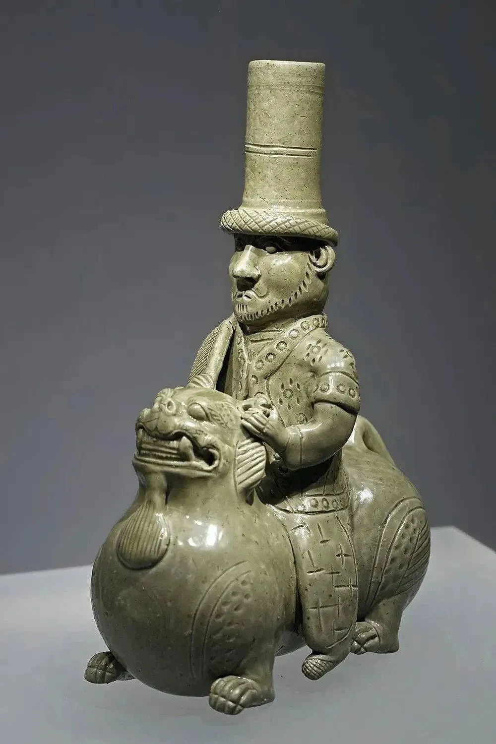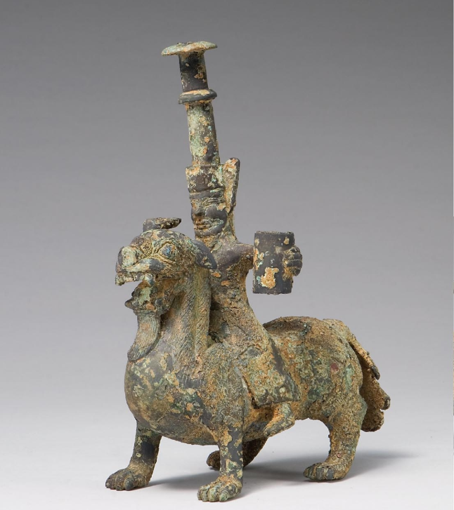 青铜仙人骑狮器,洗砚池晋墓出土,国家一级文物。 临沂市博物馆
