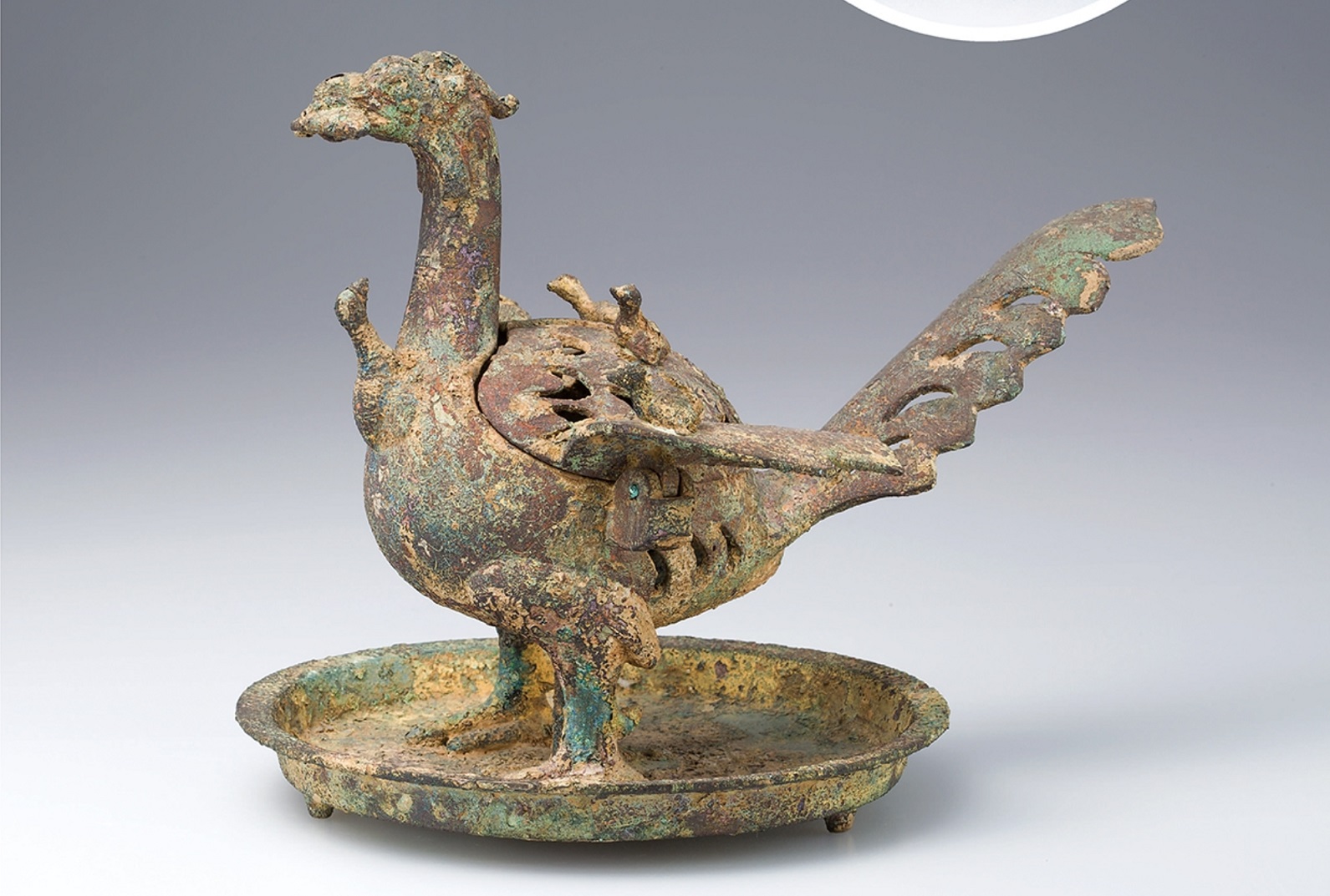 青铜神雀负雏衔鱼熏炉,洗砚池晋墓出土,国家一级文物。 临沂市博物馆