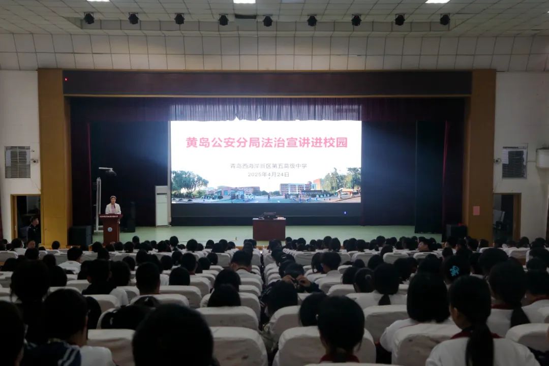4月24日下午,青岛市公安局黄岛分局联合西海岸新区第五高级中学组织开展法治宣讲进校园志愿服务活动,宣讲民警通过播放视频、案例讲解等形式,传授防范电信网络诈骗、交通安全、校园霸凌等方面的法律知识和安全知识,为学生健康成长保驾护航。