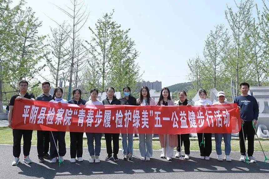 为庆祝“五一”国际劳动节,弘扬劳动精神,展现青年干警风采,增强团队凝聚力,4月29日,平阴县人民检察院青工委组织青年干警走进锦东公园,开展“青春步履·检护绿美”公益健步行活动。