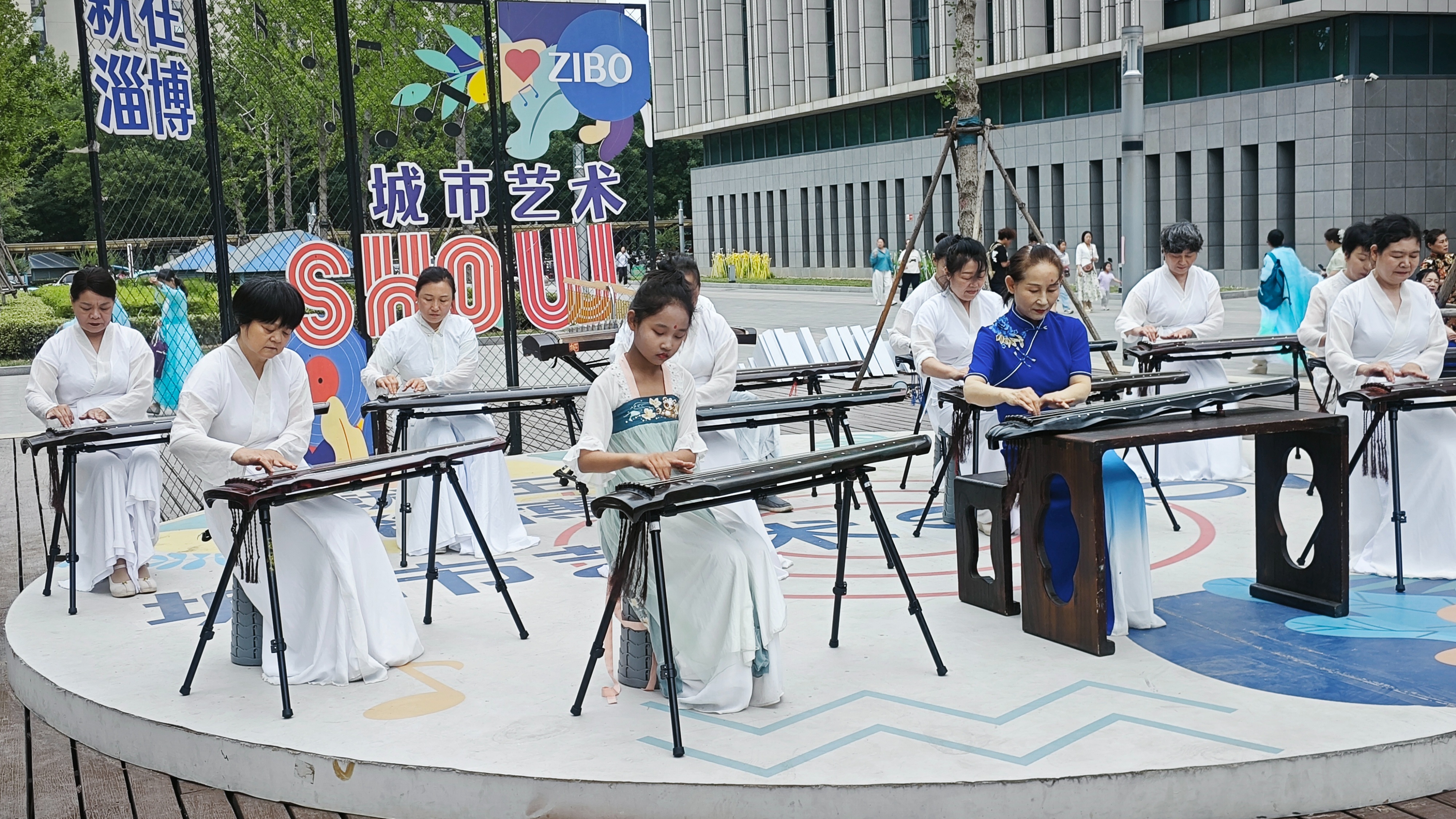 5月31日上午9点30分,“就在淄博”城市艺术show稷下琴院专场演出为此次活动拉开了序幕。悠扬的琴声在文化中心广场缓缓流淌,仿佛将人们带入了一个静谧而典雅的世界。演奏者们以精湛的技艺,或轻抚琴弦,或拨弄丝弦,音符如灵动的精灵,在空气中跳跃,为现场观众带来了一场极致的听觉享受,让游客们在传统音乐的魅力中感受端午的文化韵味。
