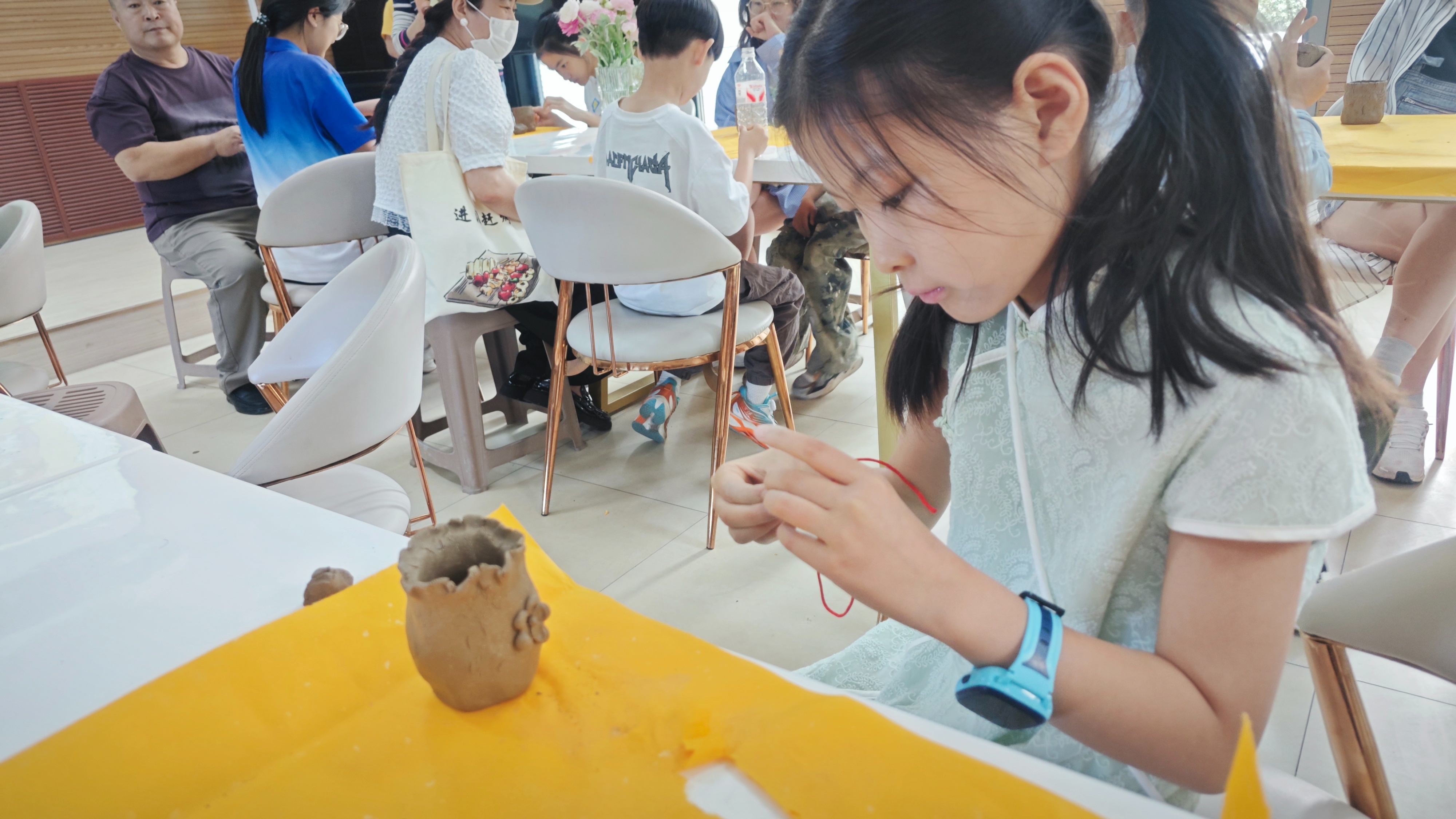 走进齐享·文化驿站,一阵浓郁的咖啡香气扑鼻而来。这个搭配优质美育体验课程,打造集文化、体验、消费为一体的“嵌入式文化空间”,正在不断提高人民群众参与公共文化服务的便利性、快捷性、舒适性和体验感。此时众多小朋友们正聚精会神地进行陶泥制作,他们正努力将手中的陶泥塑造成心仪的水杯形状。在这个过程中,孩子们既锻炼了动手能力,又感受到了陶艺创作的乐趣。