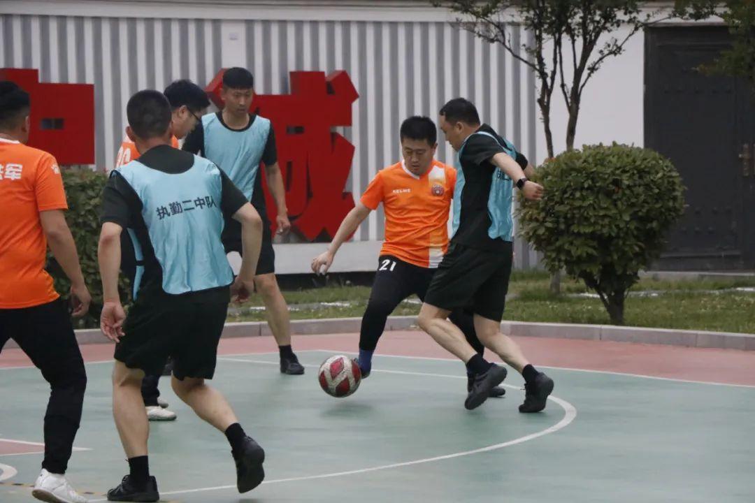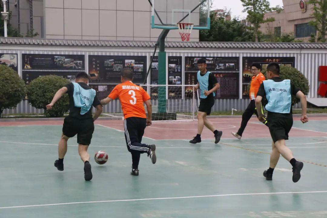 一声哨响,比赛正式拉开帷幕!赛场上,武警队员充分发挥身体素质过硬的优势冲击新航铁军队伍防线,干警队员则凭借默契配合和精准传控掌握赛场节奏。场上队员挥洒汗水,激烈对抗,场下队员呐喊助威,气氛热烈融洽。