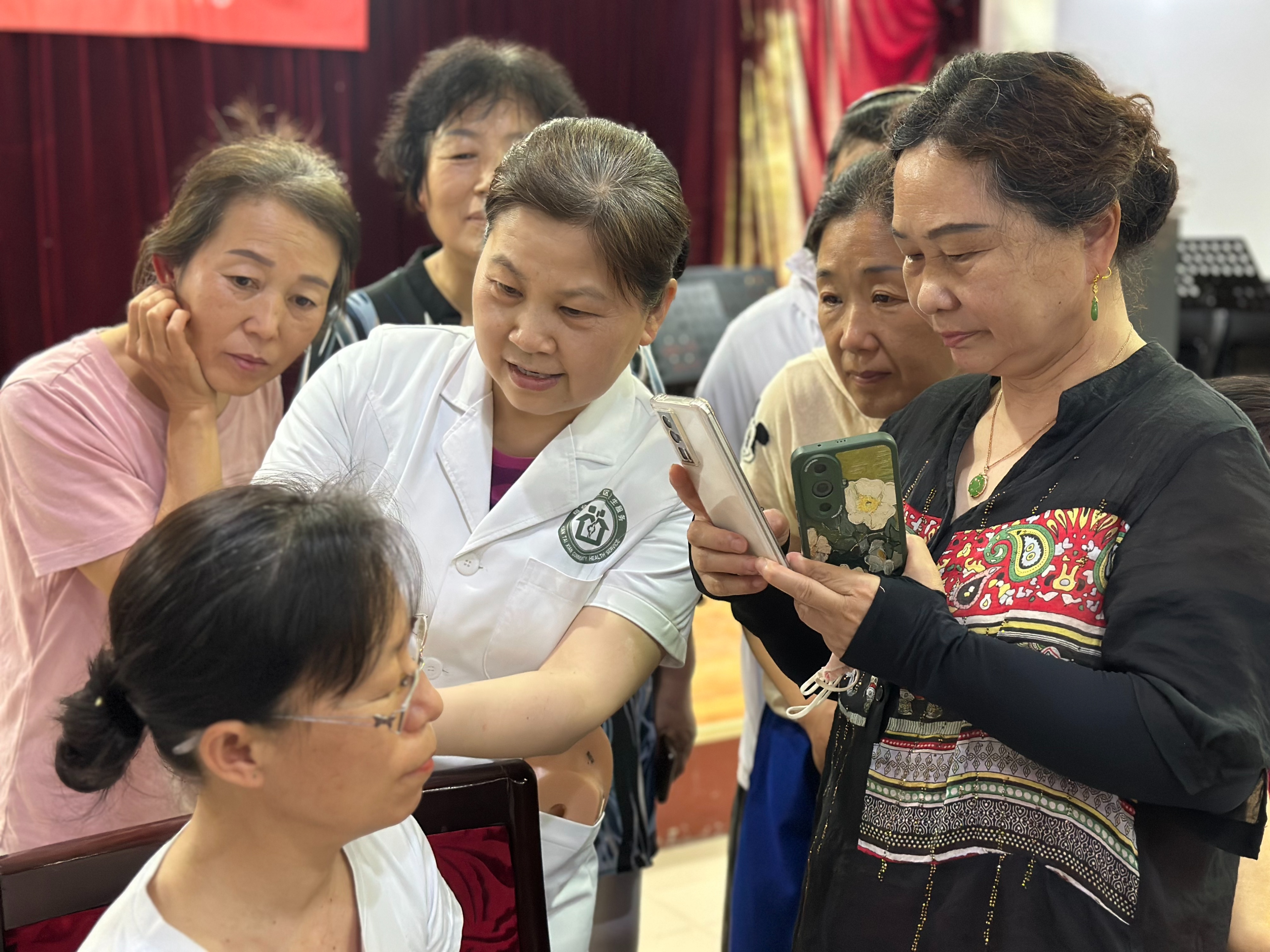 讲座结束后,医务人员为老干部们提供了耳穴压豆体验。老人们在医务人员的指导下,感受着传统中医疗法的独特魅力,通过在耳部特定穴位粘贴王不留行籽,进行适度按压,达到调节身体机能、缓解不适症状的效果。