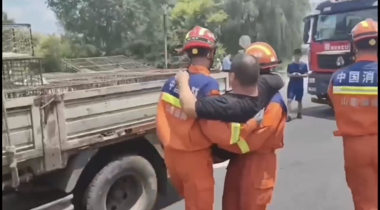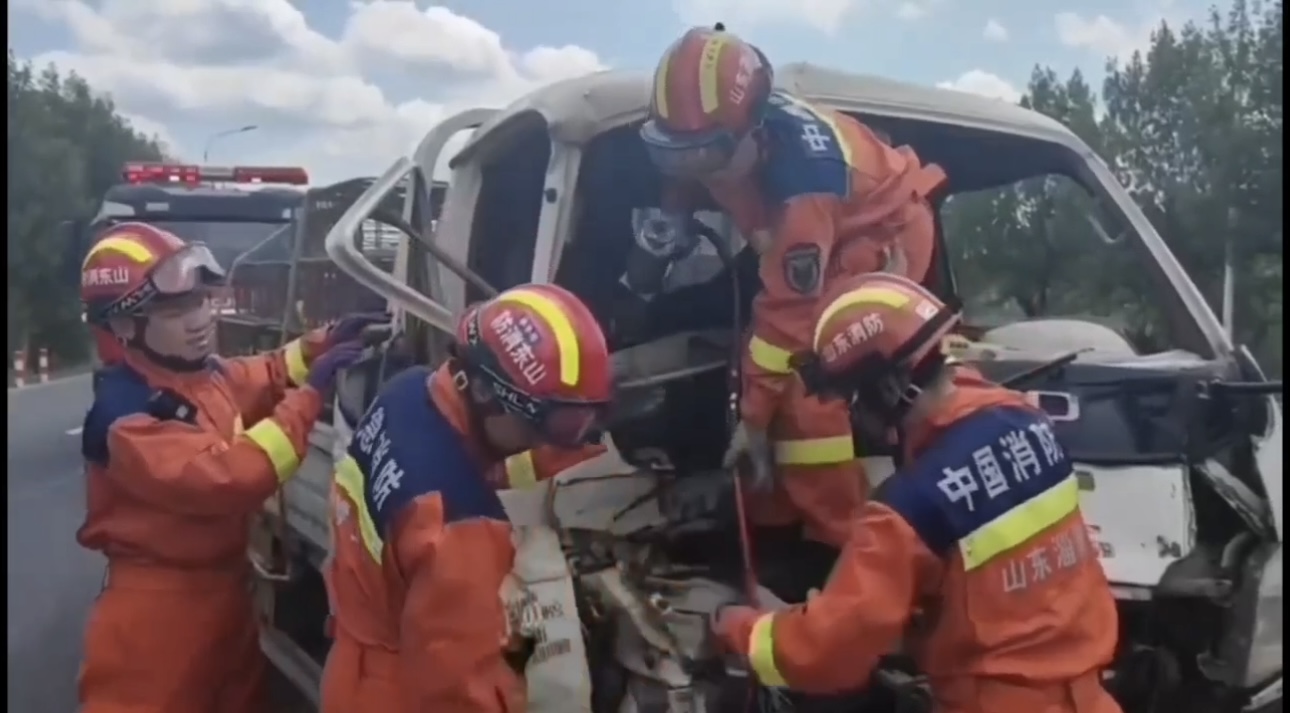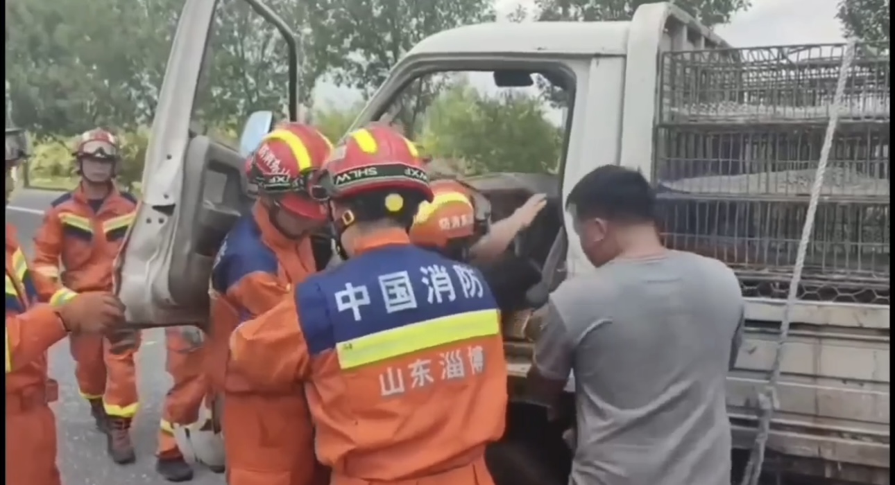 6月30日上午11点35分,淄博市高青县李凤鸣村发生一起两车相撞交通事故,一名驾驶员被困在变形的驾驶室内。淄博市消防救援支队接警后迅速出动救援力量,经过12分钟紧张施救,成功将被困人员救出。