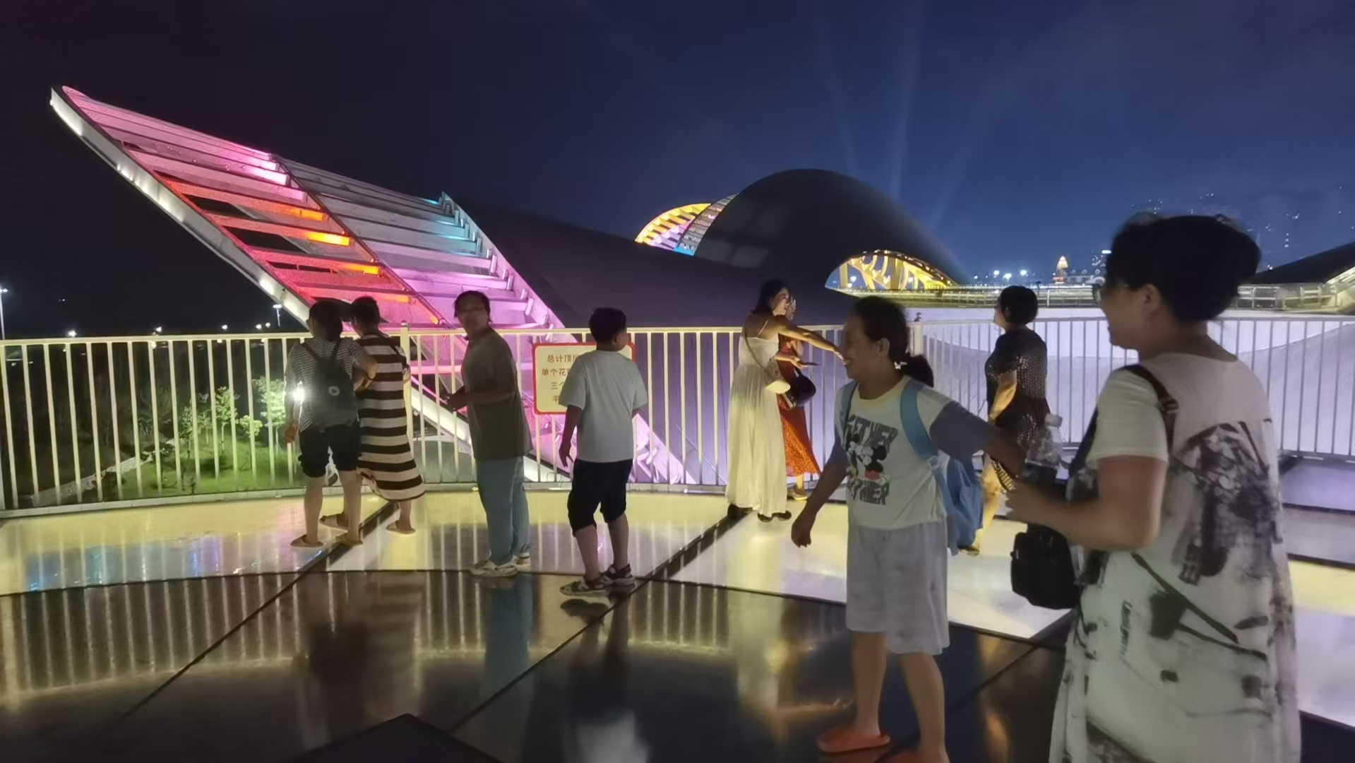 据项目负责人林炳亮介绍,“天空之镜”水滑道自运营以来,市民游客的反响很不错,日均客流量可达上千人,高峰时段是晚上七点半到九点半,客流量可达二三百人。
