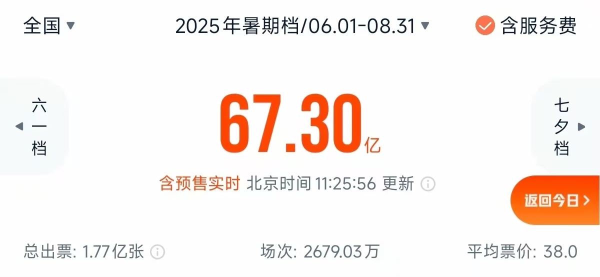 单日快速破亿!暑期档总票房已超67亿
