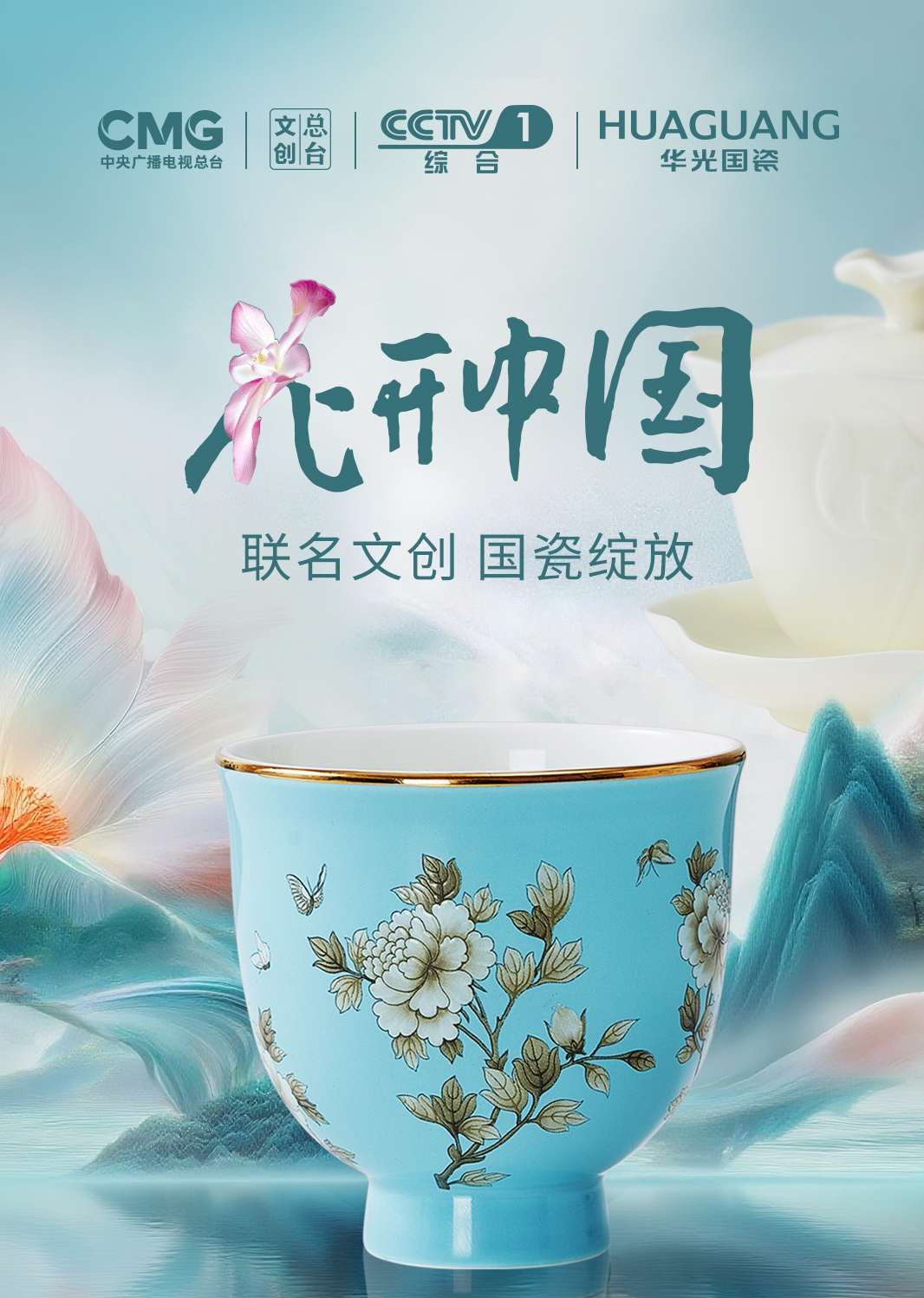 节目衍生文创亦同步启动。在节目首播前的7月17日,上海LEC全球授权展发布《花开中国》十二大IP系列陶瓷产品,四大标识体系“总台、总台文创、CCTV-1 频道标识以及华光国瓷品牌”首次同台亮相。月亮姐姐动情诠释合作深意:“《花开中国》展现中华文明底蕴,华光则以千年窑火让这份美永恒。”
