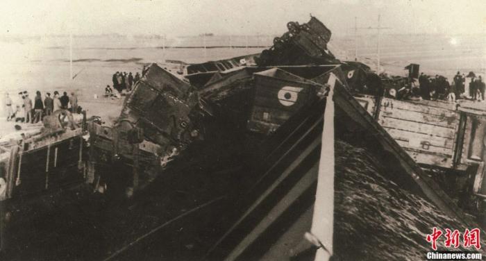 铁道游击队撞翻的火车(现存于中国人民革命军事博物馆)。铁道游击队纪念馆供图