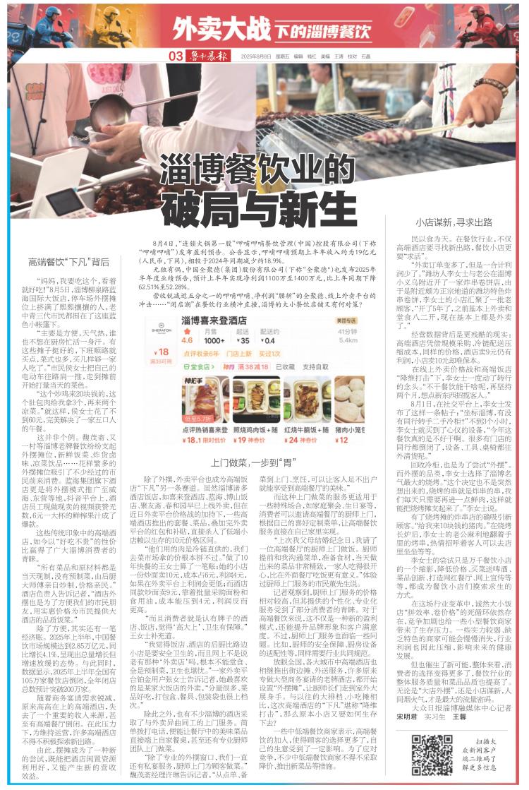 “外卖大战”下,淄博餐饮业如何破局,今日晨报为你带来详细报道
