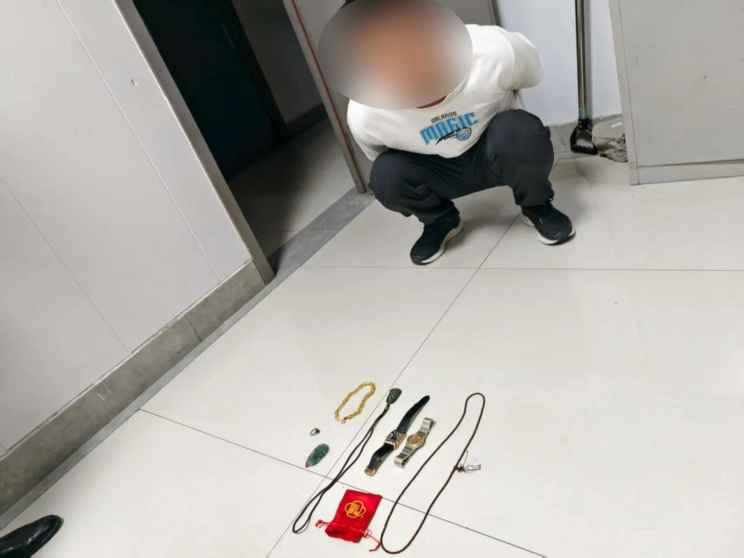 民警立即以案发现场为中心,对周边路口、街面等区域开展走访摸排工作,一名戴着黑色帽子、蓝色口罩的黑衣男子进入民警视线,其在案发时间频繁出现在现场及周边区域,通过进一步调查,民警落实其身份为陈某某,并以此为突破点,沿线追踪,发现陈某某落脚点在胶州市火车站附近。为防止陈某某乘坐火车离开,民警连夜摸排火车站附近宾馆,8月5日凌晨2时左右成功将陈某某抓获,现场查获手表、金项链等被盗物品,价值近20万。经审讯,陈某某对其实施入室盗窃的犯罪事实供认不讳,据其交代,其目前没有稳定收入来源,在闲逛时发现报警人家中窗户没关,遂实施盗窃行为,并企图乘坐火车返回省外老家,没成想这么快被警方抓获。