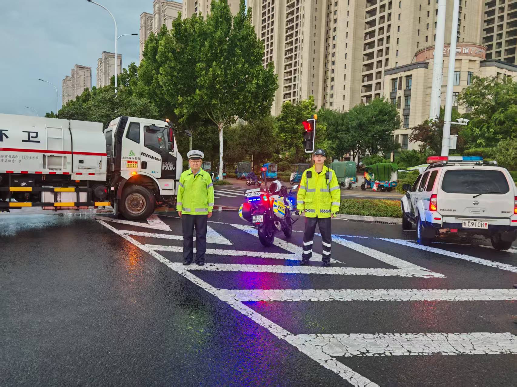 凌晨冒雨上岗查隐患防意外 张店交警启动恶劣天气应急预案