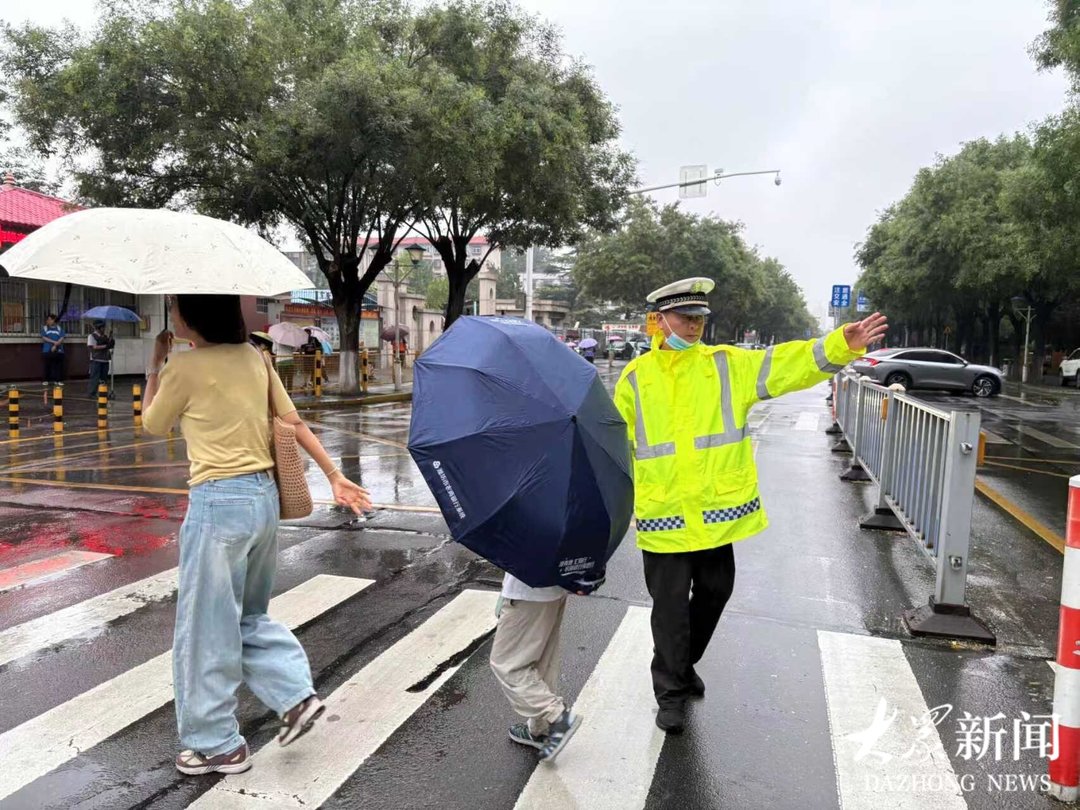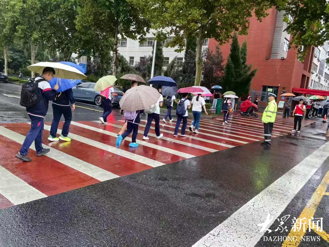 护航新学期 淄博交警闻雨而动千余警力冒雨保畅通