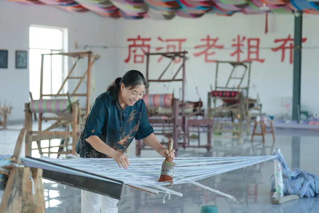 不仅如此,安琦布业主导的“商河老粗布手造非遗电商文旅综合体”,更让老粗布产业从“单一生产”向“文旅融合”升级。2023年6月,投资1000万元的综合体建成,其中3000平米的商河老粗布非遗文化博物馆,划分出手工织造区、互动体验区等四大板块,截至目前已接待团建、研学团队180余个,游客1.2万余人次。博物馆不仅成为展示非遗的窗口,更带动了孙集镇周边餐饮、住宿等配套产业发展,形成“非遗体验+旅游消费”的产业链,让老粗布从“地方特产”变成了“乡村旅游名片”。