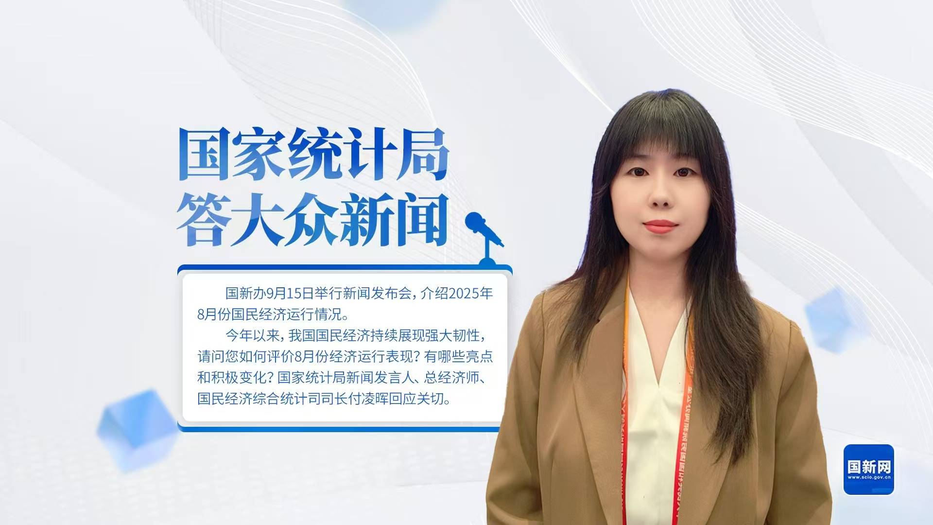 国新办9月15日举行新闻发布会,请国家统计局新闻发言人、总经济师、国民经济综合统计司司长付凌晖介绍2025年8月份国民经济运行情况。
