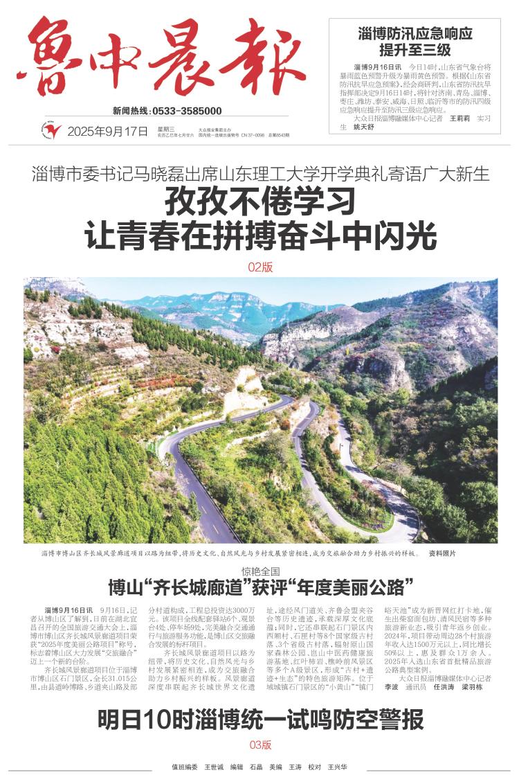 <p style="text-align: justify;">9月16日,记者从博山区了解到,日前在湖北宜昌召开的全国旅游交通大会上,淄博市博山区齐长城风景廊道项目荣获“2025年度美丽公路项目”称号,标志着博山区大力发展“交旅融合”迈上一个新的台阶。</p><p style="text-align: justify;"><img src="https://oss-article.lzcb.com/2025/09/17/062240-bcbf1458.jpg?x-oss-process=style/simple_article"/></p><p style="text-align: justify;"><strong>点击链接查看详情:</strong><a href="https://m.dzplus.dzng.com/share/general/0/NEWS2740407GNWUAEZENSAMG?timeStr=1758060902639" target="_blank"><strong>惊艳全国!博山“齐长城廊道”获评“年度美丽公路”</strong></a></p>