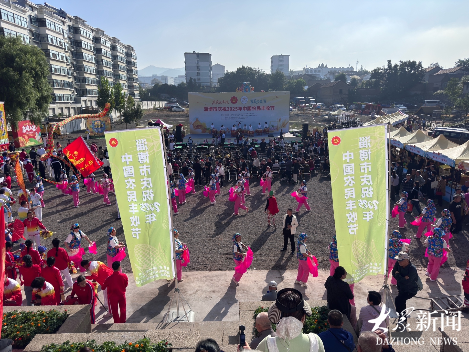 9月20日上午8点,八陡老街广场已经是一片欢腾景象。当天11点,淄博市庆祝2025年中国农民丰收节主会场活动将在此开幕。