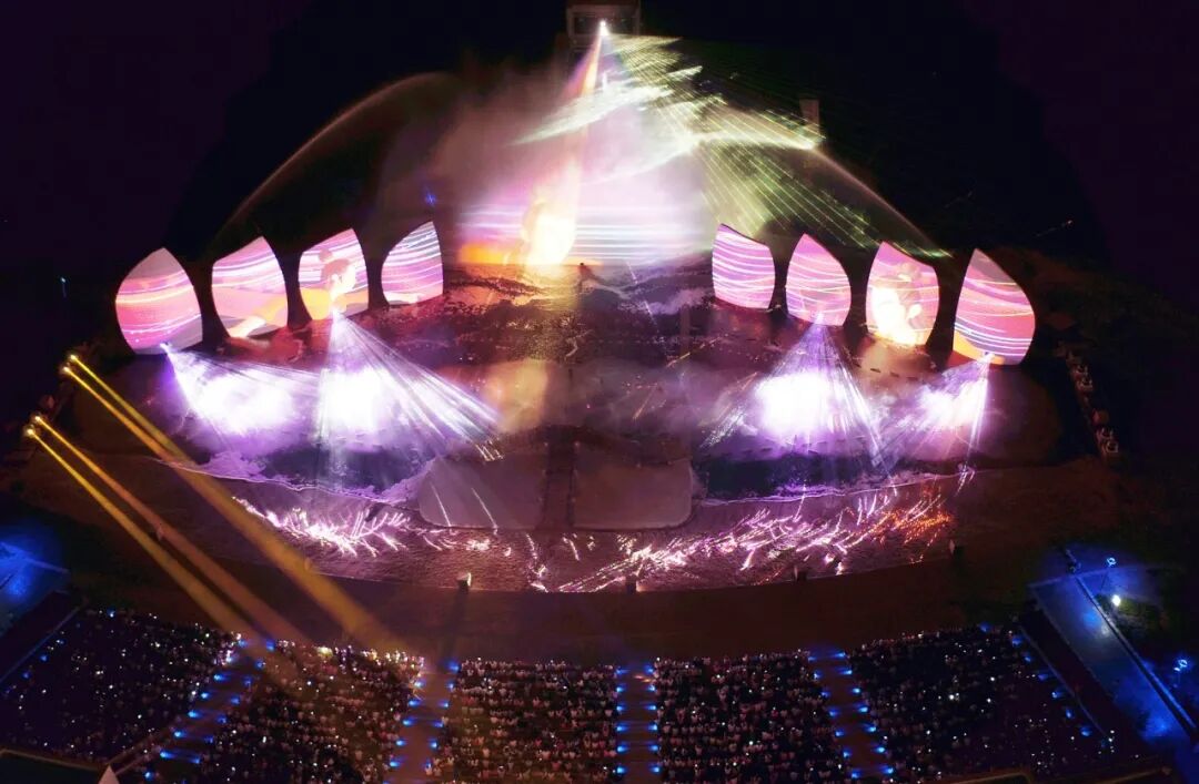 演出以日照经典爱情神话故事为核心,通过声、光、电、水雾、水爆、烟花等高科技多媒体特效,为观众带来无与伦比的沉浸式视觉盛宴。自2016年开演以来,先后斩获多项国际权威奖项。