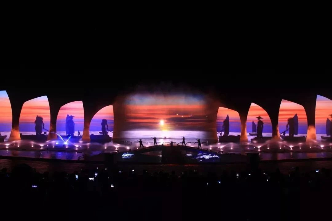 这场秀以船为载体,串起海洋文化、齐鲁民俗与商贸传奇,搭配120米环形舞台、旋转观众席和海浪模拟系统,为观众打造“入场即入海”的沉浸式体验。