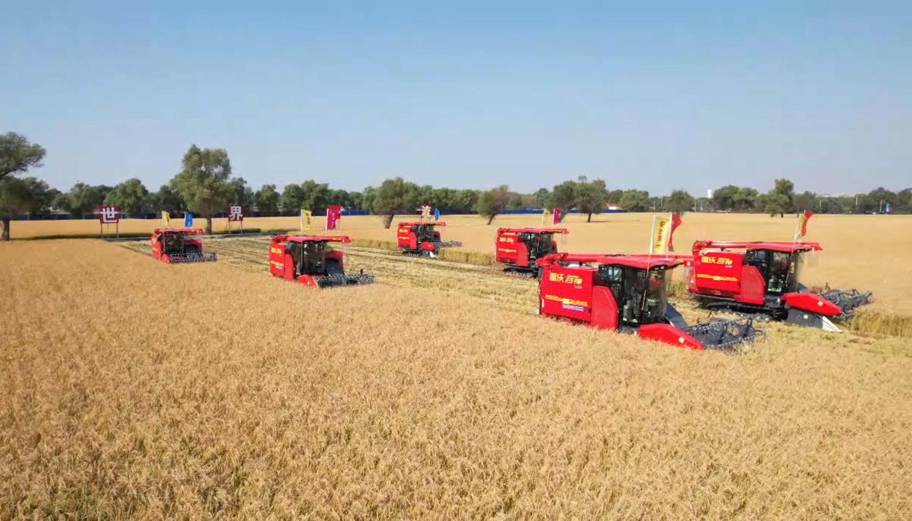 在位于山东烟台的丰收节主会场,潍柴雷沃多款高端智能农机集结列阵,雷沃P3404-8V CVT拖拉机,突破无级变速核心技术。雷沃谷神GK7168收割机,实现16公斤/秒超大喂入量。搭配液压翻转犁等高端机具,生动展现科技赋能粮安的硬核实力。
