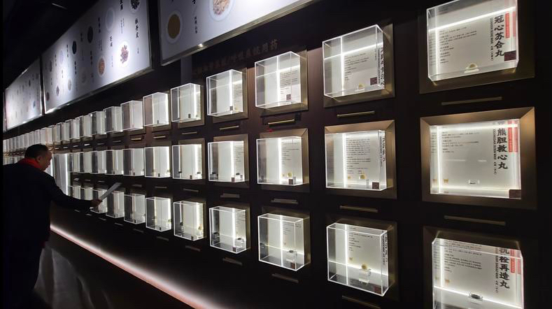 产业园内,最令扁鹊驻足的是古丸博物馆,满墙的经典丸剂如典籍般陈列。附子理中丸、人参健脾丸……每一格皆清晰标注组方主治等信息,一丸一格,堪称“强迫症的福音”。场馆中央,铜人雕塑再现古法制药场景,而一旁的互动屏轻触之间,便将丸剂千年历史娓娓道来。
