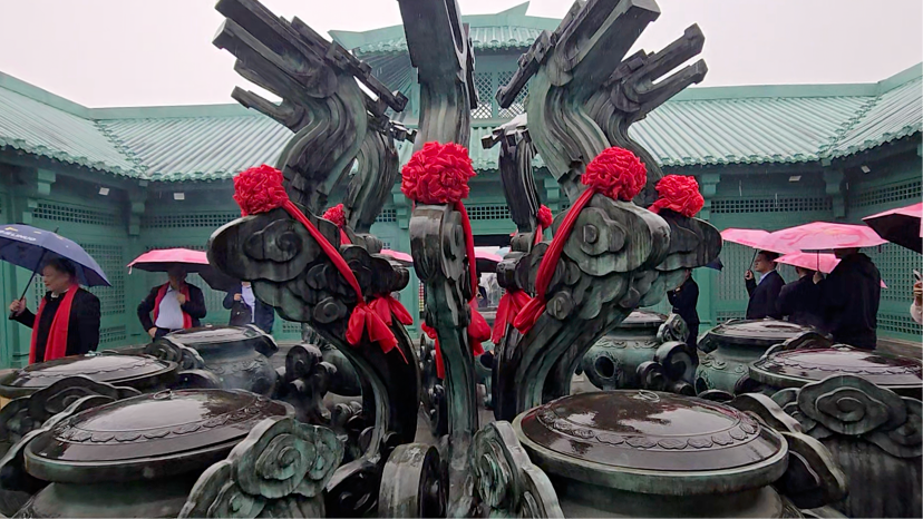9月23日,宏济堂中医药文化产业园九龙九鼎药宫胶坊里,九座龙鼎吞吐着氤氲烟雾,艾草清香浸润每一寸空气。扁鹊立于鼎旁,任药雾沾湿衣袂——这熟悉的气息,恍若昨日玉泉山采药时。
