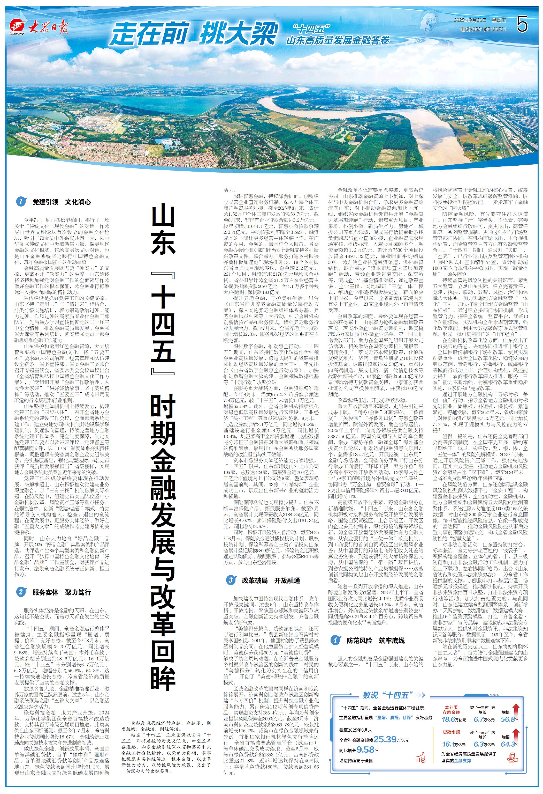 放眼齐鲁大地,金融精准滴灌百业、滋养万家的画卷已跃然眼前。过去5年,山东金融系统聚焦金融“五篇大文章”,以金融活水激发经济活力。