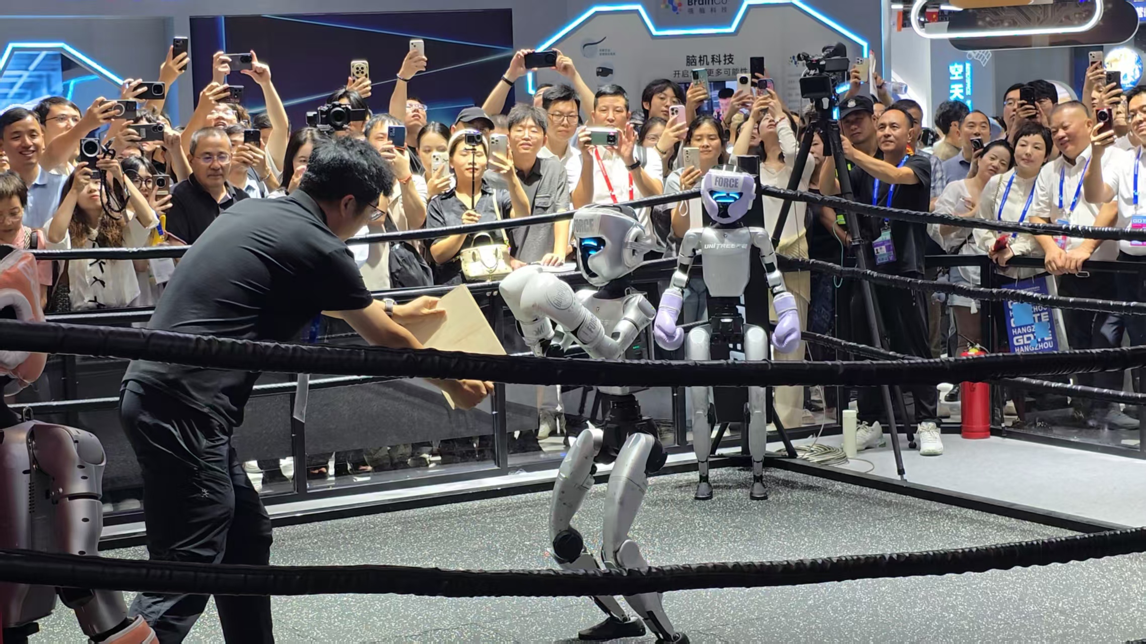 第四届数贸会上,宇树科技机器人再进行机器人拳击赛
