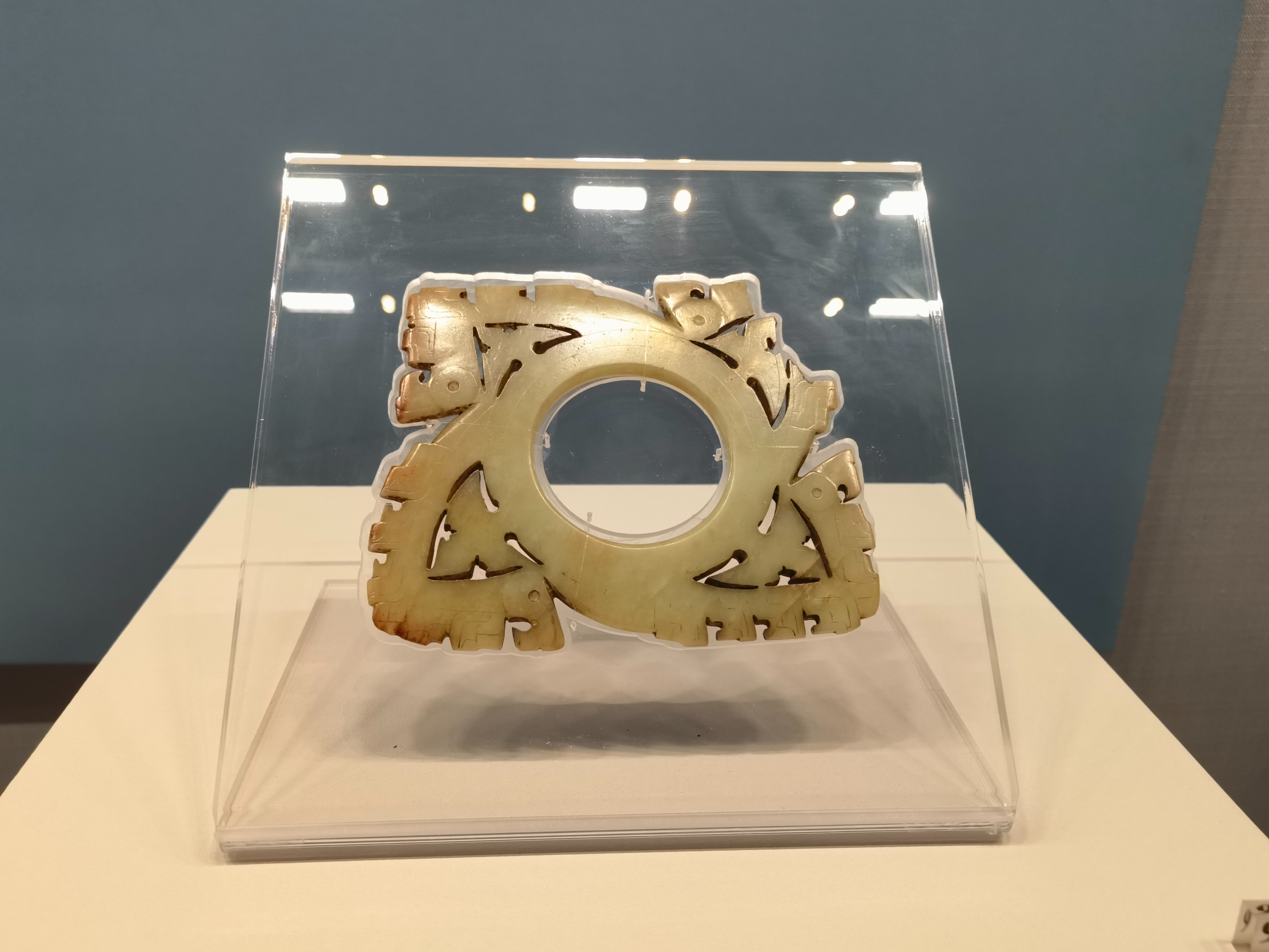 1977年,考古工作者对青岛胶州三里河遗址进行发掘,发现这种玉器出土时多在死者胸部,推断可能是一种衣饰或装饰品。考古学家夏鼐认为,这种玉器是带有礼仪或宗教意义的装饰品,也有学者认为,牙璧整体表现的是“飞鸟负日”形象,反映了海岱先民的天文观和神鸟崇拜信仰。这件文物2011年入藏青岛市博物馆后,近年只在清华大学艺术博物馆、山东博物馆的“礼运东方——山东古代文明精粹”特展出现过。因其造型独特,一经展出就引发了热议。此前,它被鉴定为商代文物,这次更正为龙山文化时期。